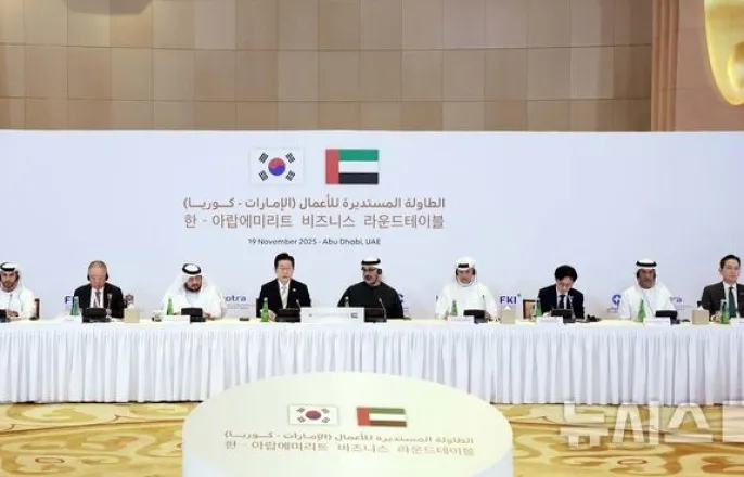 "내년CEPA발효로협력사업본격추진""AI첨단산업협력통해미래성장동력창출"국내주요그룹총수들도아부자비BRT참석[아부다비=뉴시스]최동준기자=아랍에미리트(UAE)를국빈방문중인이재명대통령이19일(현지시간)아부다비한호텔에서열린한-UAE비즈니스라운드테이블에서발언하고있다.왼쪽부터정의선현대자동차그룹회장,압둘라사이프알누아이미주한UAE대사,류진한국경제인협회회장,알스와이디투자부장관,이대통령,칼리드빈무함마드알나하얀왕세자,칼둔칼리파알무바라크무바달라개발회사CEO,김정관산업통상부장관,알제유디대외무역장관,이재용삼성전자회장[email protected][아부다비·서울=뉴시스]김지은조재완기자=이재명대통령이아랍에미리트(UAE)국빈방문마지막날인19일(현지시간)양국경제인들과만나"청정에너지와방산협력을고도화해세계최강국으로함께성장할모멘텀(동력)을확보해가자"고밝혔다.이대통령은이날오전아부다비에서열린'한-UAE비즈니스라운드테이블(BRT)'에참석해양국경제인들과경제협력강화방안을논의하며이같이말했다.이대통령은기조연설에서"양국은2018년특별전략적동반자관계를수립하며진정한형제의나라로성장했다"며"내년초한·UAE의포괄적경제협력동반자협정(CEPA)발효와함께경제협력사업을본격적으로추진하겠다"고했다.그러면서전날"한-UAE정상회담에서UAE가세계최고수준국가로도약하는데있어최적의파트너가한국이라는데의견을같이했다"며인공지능(AI)등첨단기술과방산등분야에서양국의미래파트너십(동반관계)방향을제시했다.한국과UAE는전날정상회담및양해각서(MOU)교환을통해4대핵심분야인투자,국방·방산,원전,에너지에더해AI등첨단기술과보건의료,문화까지양국의산업협력을확대하기로했다.특히방산협력을강화해제3국으로공동수출을추진하고한국은UAE가현지에초대형AI데이터센터를건설하는'스타게이트프로젝트'에참여하기로했다.이대통령은방산분야와관련해"공동개발기술협력,현지생산까지의협력의수준을제고해양국방위산업발전에기여하게되길바란다"며"나아가제3국공동진출을통해양국의협력이글로벌차원으로확산되길희망한다"고했다.이어"UAE의태양광발전잠재량과한국첨단배터리기술력을결합한에너지전환협력은2050년탄소중립공동달성,친환경전환에크게기여할게분명하다"며"핵연료전기,관련현지공장건설을통해UAE에이바지하는호혜협력이실현될것"이라고기대했다.첨단기술과관련해서는"이번방문을계기로인공지능데이터센터와바이오테크까지첨단산업협력을가속해전략적파트너십을업그레이드하겠다"며"인공지능중심의첨단산업협력을통해미래성장동력을함께창출하자"고했다.문화협력도언급했다.이대통령은"소프트파워협력으로사람과문화의연결을더넓혀나가겠다"며"중동문화강국인UAE와소프트파워협력을강화해K-컬처가중동전역으로확산되길기대한다"고덧붙였다.이대통령은마무리발언에선"한국과UAE양국은안보환경,지정학적측면에서유사한점이있고사람을중시하는공통점이있다"며"첨단산업과문화등분야에서서로의부족한부분을채우고양국지도자,국민간교류를활성화한다면진정한형제의나라로서공동번영이가능할것"이라고했다.[아부다비=뉴시스]최동준기자=정의선현대자동차그룹회장과김정수삼약식품대표이사부회장이19일(현지시간)아부다비한호텔에서열린이재명대통령아랍에미리트(UAE)를국빈방문계기한-UAE비즈니스라운드테이블에서압둘라모하메드헤랄알카비사르야대표와대화하고있다[email protected]칼리드빈모하메드빈자이드알나흐얀아부다왕세자는"대한민국과UAE의관계는45년외교관계이상을넘어선다"고화답했다.칼리드왕세자는"공동가치,대화,파트너십,그리고글로벌협력믿음을근간으로한다"며"이런원칙은계속우리를이끌어주고우리우정을강화해주고번영의새로운길을열것"이라고말했다.이어"우선적으로혁신분야,인공지능,청정재생에너지,지속가능한발전가능성의뜻을강화하기위해아부다비에다시모였다"며"이들목표는저희가중시하는목표"라고강조했다.그는또지난달방한해경주APEC정상회의에참석한것을언급하며"한국인의멋진창의력을목격할수있었고이대통령의미래기술선도력을확인할수있었다"고도했다.이번행사는이대통령의UAE국빈방문을계기로마련됐으며한국경제인협회,대한무역투자진흥공사,UAE대외무역부,아부다비상공회의소가공동주최했다.행사에는양국정부,기관,기업관계자50여명이함께했다.우리측에서는이재용삼성전자회장과정의선현대차그룹회장,김동관한화그룹부회장등경제사절단이참석했다.기업들은이번라운드테이블의주제인첨단산업,에너지·인프라·방산,문화등양국핵심협력분야를중심으로미래협력방향을논의했다.행사개최에앞서에너지와인프라,원전,문화등분야에서양국기업과기관간MOU를교환하는행사도진행됐다.류진한국경제인협회회장은"한손으로는박수를칠수없다는아랍속담처럼혼자서는불가능한일도,함께하면가능하다"며"양국경제계가더욱굳게손잡고공동번영의구체적인성과들을만들어가길바란다"고헀다.정회장은취재진과만난자리에서한미관세협상타결과관련해"내년미국시장이괜찮아질것으