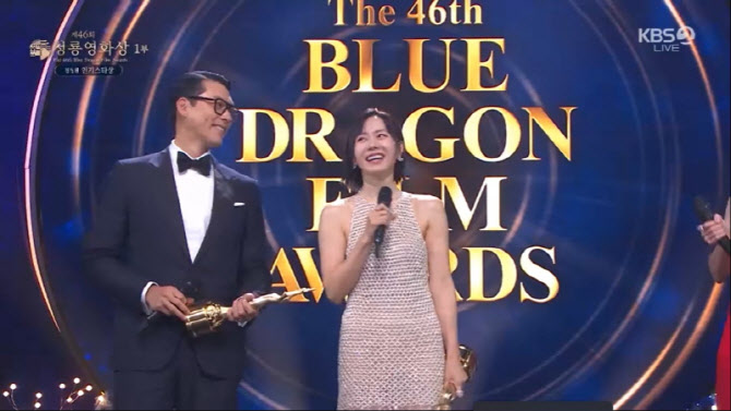 [스포티비뉴스=배선영기자]배우현빈과손예진이청룡영화상에서나란히인기상을수상하며무대에올라소감을전했다.19일오후서울영등포구여의도KBS홀에서제46회청룡영화상이개최됐다.진행은배우한지민과이제훈이맡았다.이번청룡영화상은부부인현빈과손예진이각각영화‘하얼빈’과‘어쩔수가없다’로남우주연상,여우주연상후보에올라결혼후처음으로시상식에동반참석한것으로화제가되기도했다.두사람은1부말미청정원인기스타상부문에서수상자로선정되면서같이무대에올랐다.청정원인기스타상수상자는'하이파이브'의박진영,'하얼빈'의현빈,'어쩔수가없다'의손예진,'악마가이사왔다'의임윤아다.이날현빈은"이상을제손에쥐어주시려고많은팬분들이투표해주신것으로안다.너무감사하다"라는소감을전했다.이에MC이제훈은"이렇게부부가무대위에서투샷으로잡힌것은처음이다"라고말해객석의환호를자아냈다.이어손예진은"저역시잊을수없을것같다.신랑과함께인기상을받을수있어너무영광이다.저희에게잊지못할추억을선사해주셔서관계자및팬분들께너무감사드린다"라고말했다.손예진은현빈의옆에서손가락으로'브이(V)'포즈를만들어기쁨을표현하기도했다.또현빈은"이렇게둘이같이상을받은게'사랑의불시착'이라는드라마가있었고그이후로또함께상을들고무대에서있는데오늘또한역시너무행복하다.감사드린다"라고전했다.이제훈은"그럼이제집에트로피두개각자나란히놓게되는거냐,너무부럽다"라고말했다.<저작권자ⓒSPOTVNEWS.무단전재및재배포금지>Copyright©스포티비뉴스.무단전재및재배포금지.