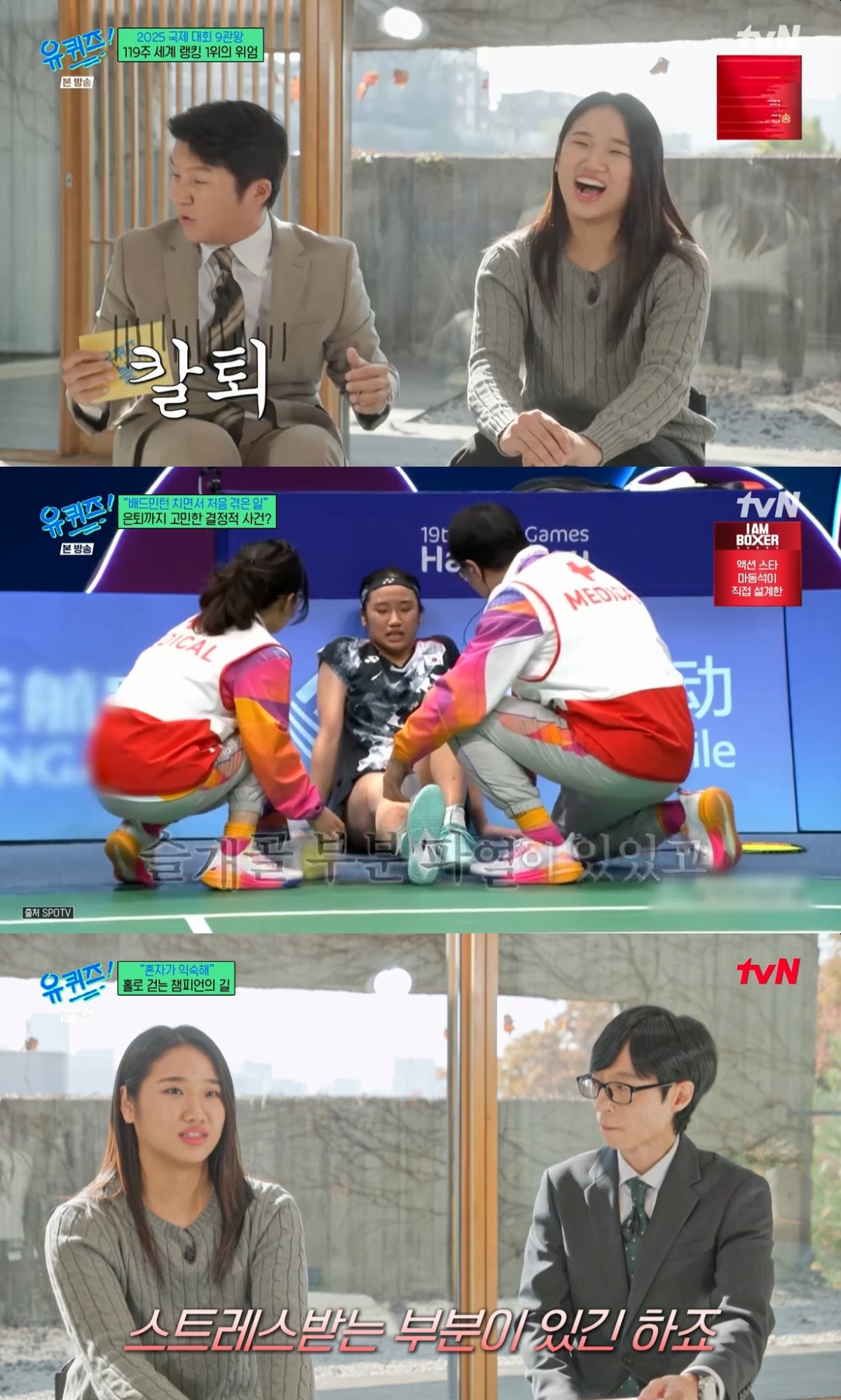 [스타뉴스|안윤지기자]/사진=tvN'유퀴즈온더블럭'방송캡처'유퀴즈'안세영선수가올림픽당시통증을밝혔다.19일방송된tvN'유퀴즈온더블럭'(이하'유퀴즈')에서는배드민턴여자단식세계랭킹1위안세영선수이출연했다.유재석은"승률이94%되면가끔질때왜지는지가궁금해진다.세계랭킹1위를1년넘게유지중"이라고말했다.안세영선수는"운동도열심히하게되고동기부여가생겨서잘하게된다"라고답했다.이에유재석은"시간이지나면서차분해진거냐,정상에오르면서나모르게생긴아우라냐"라고묻자,안세영선수는"반반섞인거같다.나이먹으면서여유를가질수있게된거같다.세계랭킹1위란위치에서어느정도퍼포먼스를보여줄지기대되는게크다"라며"내나이는현역선수로한창이다.계속올라갈때다.잘될때는공이느리게보인다"라고전했다.이를들은조세호는"나도비슷한날이있다.내가못웃길자신이없는데할때있다"라고하자,유재석이바로"근데그런날망한다"라고해웃음을자아냈다.안세영선수는"2022항저우아시안게임때상처입고힘들었다.계속부상달고가야하니까나도좀많이예민해지고힘들었다"라며"결승전때일어났다.점프했을때무릎에서소리나면서통증이오더라.슬개골부분파열도있었고남은세트를풀어나갈수있을까싶었다.겁을먹었다"라고털어놨다.이어"인간관계에서스트레스받는다.단식선수라혼자하는거에익숙한데다른사람에게말을붙이는게어렵다.사람대하는게어렵다"라며"잘하는게배드민턴밖에없다.경기때는되게멋있게하려고하는데막상일상으로돌아오면아무것도못하는사람이돼버린다.다른사람들도내이야기를궁금해하지않을거같다.방언니한번씩있으니까플레이에대한말은하지만혼자푸는게제일좋다"라고속내를밝혔다.한편'유퀴즈'는매주수요일오후8시45분에방송된다.안윤지기자[email protected]©스타뉴스&starnewskorea.com,무단전재및재배포금지