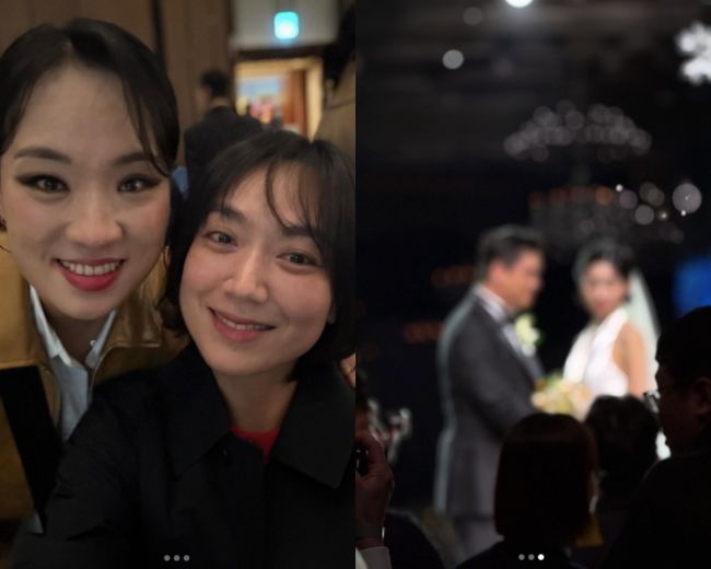[OSEN=박하영기자]개그우먼이은형이이장우,조혜원결혼식에참석한가운데정지선셰프와만나인증샷을남겼다.23일이은형은자신의계정에“정지선셰프님과사진찌금!!!!뿌엥진짜진짜멋있어!!!”라며정지선셰프와다정히찍은셀카를공개했다.사진속두사람은이장우와조혜원결혼식에참석해만난모습이담겼다.두사람은카메라를향해환하게웃으며다정한포즈를취했다.또이은형은결혼식내부를찍거나,결혼식을올린이장우와조혜원의모습을흐릿하게찍으며“예쁘게사랑스러웠던결혼식”이라고축하의메시지를전했다.이는비공개결혼식인만큼지켜주고했던것으로보인다.이에남편강재준은"누가봐도장우잖아"라고반응해웃음을자아냈다.정지선역시이장우와함께찍은사진을올리며“결혼축하해요”라고전하기도했다.한편,이장우와조혜원은8년열애끝에비공개결혼식을올렸다.이날결혼식에는‘나혼산’멤버총출동했으며,이외에도윤시윤,황신혜등배우들도참석해눈길을끌었다./mint1023/@osen.co.kr[사진]‘이은형’Copyright©OSEN.무단전재및재배포금지.