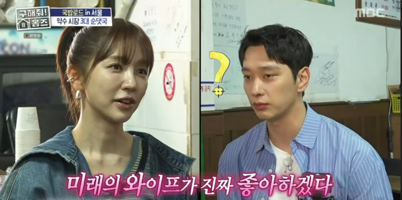 가수겸배우윤은혜가황찬성에게사과했다.iMBC연예뉴스사진11월27일방송된MBC예능프로그램‘구해줘!홈즈’에서는장동민,윤은혜,황찬성이‘국밥로드in서울’임장을떠난모습이공개됐다.이날세사람은약수시장국밥3대장중한곳을찾았다.황찬성이자리에앉자마자수저를놓자,윤은혜가“막내들특징이있다.시키지않아도수저를놓는다”라며공감했다.황찬성과윤은혜가각각그룹2PM,베이비복스막내인것.iMBC연예뉴스사진iMBC연예뉴스사진iMBC연예뉴스사진iMBC연예뉴스사진이후황찬성이“뭐든지잘먹는다.제가맛없다고하는건진짜아니다”라고하자,윤은혜가“미래의와이프가진짜좋아하겠다”라고말했다.그러자황찬성이“현재와이프가있다”라고밝혔다.뒤늦게황찬성이유부남이란사실을안윤은혜가“아직도저한테는예전2PM이미지가있고지금봤는데도되게젊어보이셔서”라며사과했다.한편,바쁜현대인들의집찾기를위해스타들이직접나선리얼한발품중개배틀‘구해줘홈즈’는매주목요일밤10시에방송된다.iMBC연예김혜영|사진출처MBCCopyright©MBC연예.무단전재및재배포,AI학습금지.