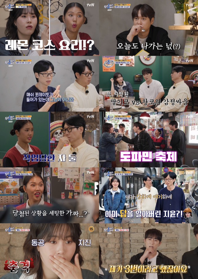 ‘식스센스시티투어2’5전1승4패(사진=tvN)식센이들이패배의늪에빠졌다.지난27일(목)방송된tvN‘식스센스:시티투어2’5회에서는식센이들이서울마포구시티투어에서속이기에진심인제작진에게또한번당하며5전1승4패라는씁쓸한전적을기록했다.‘신세계마포’를주제로한이번투어에서는‘마포잘알’게스트김원훈,엄지윤과‘신’맛가득밥상,‘신’개념타코,‘신’나는포차키워드를가진색다른핫플레이스를방문하며단서를수집했다.특히식센이들은첫번째집인‘신’맛가득밥상의팝업스토어같은인테리어,단가가맞지않는듯한레몬코스요리가수상했지만맛은의심할여지가없어흔들리기시작했다.‘신’개념타코는컵라면에찍어먹는한국식비리아타코를판매하는곳으로컵라면과타코의조합이다소어색해보였으나식센이들의미각세포를사로잡으며맛으로는진짜의기운을강하게풍겼다.하지만김원훈이이곳과비슷하게기성품컵라면을판매하는곳이있다는이야기를꺼내제작진의사전작업의혹이수면위로떠올랐다.이에김원훈은“5년전부터작업을해요?”라고의아함을드러내폭소를유발했다.마지막‘신’나는포차는뽑기가격보다더비싼안주를뽑을수있고,메뉴판에없는히든메뉴가나올수있는안주뽑기기계가있어눈길을사로잡았다.그중유재석이2만원짜리뽑기기계에서가장비싼4만9천원인통문어숙회와먹물라면세트에당첨돼도파민이급상승했다.지석진은3만원짜리뽑기기계에서히든메뉴를획득하는운이따랐다.최종선택에서는자신감넘치는엄지윤을따라‘신’맛가득밥상을골랐으나김원훈이추측한‘신’나는포차가가짜였다.골목상권침체로직격탄을맞아폐업을고민하기도했던가게사장을위해김훈셰프의도움을받아요즘핫한뽑기기계를접목한뽑기주점이탄생하게됐고귀여운마스코트는이모티콘작가정다슬이만들었던것.이로써4패를달성한식센이들이충격에휩싸인가운데유독강하게의견을어필했던엄지윤은과거의자신을부끄러워했고유일한정답자인김원훈은“그렇게어렵지않아요솔직히”라며의기양양한모습을보였다.그러나SNS감성글벌칙자를랜덤으로뽑게된김원훈이자신의이름이적힌종이를선택,‘지팔지꼰’엔딩을맞이해끝까지웃음을선사했다.4패로고전중인유재석,지석진,고경표,미미의각성한활약이기대되는tvN‘식스센스:시티투어2’는오는12월4일(목)저녁8시40분에방송된다.‘식스센스시티투어2’5전1승4패(사진=tvN)박지혜기자[email protected]뉴스연예팀기사제보[email protected]©bnt뉴스.무단전재,재배포및AI데이터활용금지