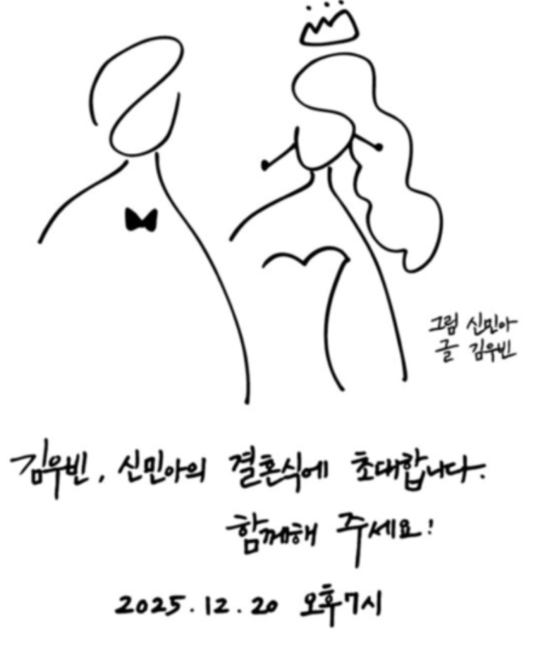 사진=SNS캡처내달결혼하는배우신민아김우빈의청접장이공개돼화제를모으고있다.27일신민아의헤어스타일링을15년이상담당한관계자는자신의SNS에신민아김우빈의청첩장을게재하며“사랑스런센스쟁이들너무축하해”라고남겼다.청첩장에는선으로간단하게그린남녀의모습이담겼다.그림밑에는‘김우빈·신민아의결혼식에초대합니다.함께해주세요!2025.12.20오후7시’라고적혀있고,‘그림신민아,글김우빈’이라는글자도적혔다.정성스럽게진심을담아손수만든청첩장이뭉클함을자아낸다.신민아,김우빈.사진=일간스포츠DB,에이엠엔터테인먼트두사람은지난20일결혼소식을알렸다.지난2015년열애를인정한후10년만이다.두사람의소속사에이엠엔터테인먼트는“신민아와김우빈이오랜만남으로쌓아온두터운신뢰를바탕으로서로의동반자가되기로약속했다”며“인생의소중한결정을내린두사람의앞날에따뜻한응원과축복을보내주시길부탁드린다”고전했다.두사람은10년동안연예계공식커플로사랑을키워가는동시에다양한기부와선행도함께해왔다.신민아는지난15년간40억원,김우빈은11억원을기부했으며두사람의누적기부액만무려50억여원이다.그런두사람의결혼소식이알려진후많은사람들의축하가쏟아지고있다.한편두사람의결혼식은오는12월20일오후7시,서울신라호텔에서진행된다.식은가족과친인척,가까운지인들만모시고비공개로진행될예정이다.강주희기자[email protected]©일간스포츠.무단전재및재배포금지.