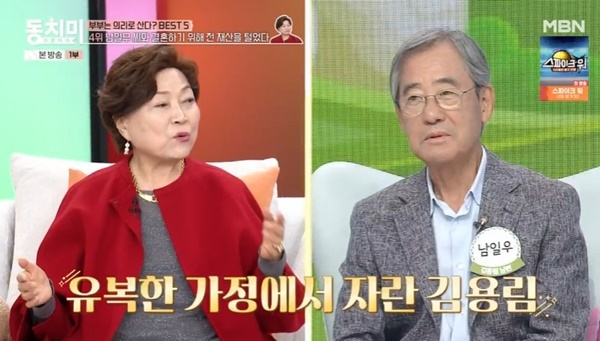 MBN‘속풀이쇼동치미’MBN‘속풀이쇼동치미’[뉴스엔유경상기자]김용림이남편남일우와결혼하기위해전재산을줬다고말했다.11월29일방송된MBN‘속풀이쇼동치미’에서는‘사랑은의리다’라는주제로속풀이가펼쳐졌다.김용림은“남일우와결혼하기위해전재산을털었다”며“나는넉넉한집안막내딸이고남편은외아들인데아버지가사업이쫄딱망했을때다.최악으로나쁠때다.연애하는데우리집에서알고안된다는거다.배우라는남자직업은직업이아니다,너하나배우인것도웃기는데남편까지배우라는건있을수없다.연예인이대접을못받을때”라고친정의결혼반대를말했다.이어“선배에게물어본적이있다.집에서원하는신랑을만나야하나,내가사랑하는사람을만나야하나.선배가네가사랑하는남자와결혼해야나중에어려움이와도살아갈수있다고하더라.용기를얻어서결혼을결심했다”고했다.이현이가“어떤점이그렇게좋으셨냐”고묻자김용림은“이남자가거짓말을전혀안하고잘생겼다”고답했다.모두가잘생기면착한거라며김용림의답을이해했다.김용림은“남일우가장위동에살았다.60년대논두렁이었다.엄마가몰래그집을찾아갔다.도저히너를못보내겠다,그런집에가서어떻게사냐.거기에외아들이라외며느리고운데없다고안보내려고했다.한참궁리한끝에내통장에있는돈을다남일우에게줬다.당신이집을샀다고해라.남일우돈과내돈을반반보탠거”라고말해모두의감탄을자아냈다.김용림은“집을사서엄마에게보라고.국민주택을보이고엄마허락을받았다.그때국민주택이방3개에예쁜집들이었다.그래서살만했다.거기에서시집살이를하게됐다.시어머니모시고.내가이남자를사랑하기때문에의리로라도해야한다.친정에거짓말하고집을장만했다.우리친정은몰랐다.아이들에게도말안했다”고했다.(사진=MBN‘속풀이쇼동치미’캡처)뉴스엔유경상yooks@기사제보및보도자료[email protected]ⓒ뉴스엔.무단전재&재배포금지Copyright©뉴스엔.무단전재및재배포금지.