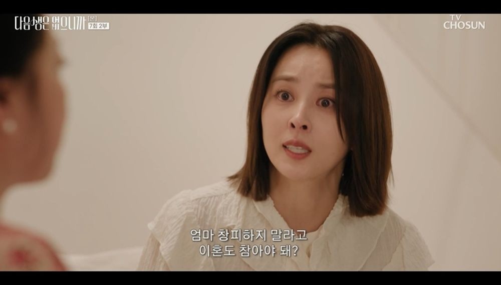 [TV리포트=남금주기자]한혜진이남편장인섭과이혼을결심했다.1일방송된TV조선월화미니시리즈'다음생은없으니까'7회에서는조나정(김희선분)이오빠부부에게당하고사는엄마때문에속상해하는모습이그려졌다.이날술에취해변상규(허준석)에게키스한이일리(진서연)는다음날아침후회했다.그러나이일리는변상규가"당장은안좋아해도된다.좋아하게만들거다"라고고백했던걸떠올리며순간설렜고,"부산촌놈변상규야"라고자신을다그쳤다.이일리는자기집앞에서서성이던변상규를마주치고기억이안난다고둘러댔다.변상규가아무일없었다고말해주자이일리는"내가무시했다고자기도무시하는거야?"라면서하루종일변상규생각만했다.자신의기억이왜곡됐다고생각하는이일리는변상규에대한환상을깨기위해변상규가일하는병원으로향했다.하지만이일리는치료받으며변상규가더멋있게느껴졌고,심박수는올라갔다.변상규가다른간호사들과대화하는걸보고질투까지하는이일리.변상규는인사도안하고가는이일리를붙잡으며밥을먹자고했지만,이일리는변상규의손길을뿌리쳤다.하지만오토바이가오자자신을보호한변상규에게다시금심장이뛰기시작했다.이일리는"미쳤나봐"라며애써부정했다.그런가운데구주영(한혜진)은엄마에게남편오상민(장인섭)과이혼할거라고밝혔다.구주영은화를내는엄마에게마네킹을보여주며"내몸집만한인형을지하방에숨겨놓고시시때때로보러갔더라.황당한건이인형들이랑대화도한다.사진도찍고,내욕도하고.알고보니변태였던거야"라고울먹거렸다.그러나엄마의반응은싸늘했다.엄마는"고작이딴것때문에이혼하겠단거야?"라며"이혼녀로사는거보다껍데기라도남편있는여자로사는게보기좋다"라면서자신의체면때문에참고살라고말했다.결국구주영은"엄마창피하지말라고이혼도참아야해?"라고폭발했다.엄마가아픈척연기하자구주영은"연기좀하지마.자기마음대로안되면갑자기피해자코스프레.맨날가스라이팅"이라고울부짖었다.예고편에서구주영은오상민과함께협의이혼을접수하는모습이그려졌다.구주영은"차라리잘됐지뭐.애라도있었으면이혼이이렇게쉬웠겠어?"라고밝혔다.남금주기자[email protected]/사진=TV조선'다음생은없으니까'Copyright©TV리포트.무단전재및재배포금지