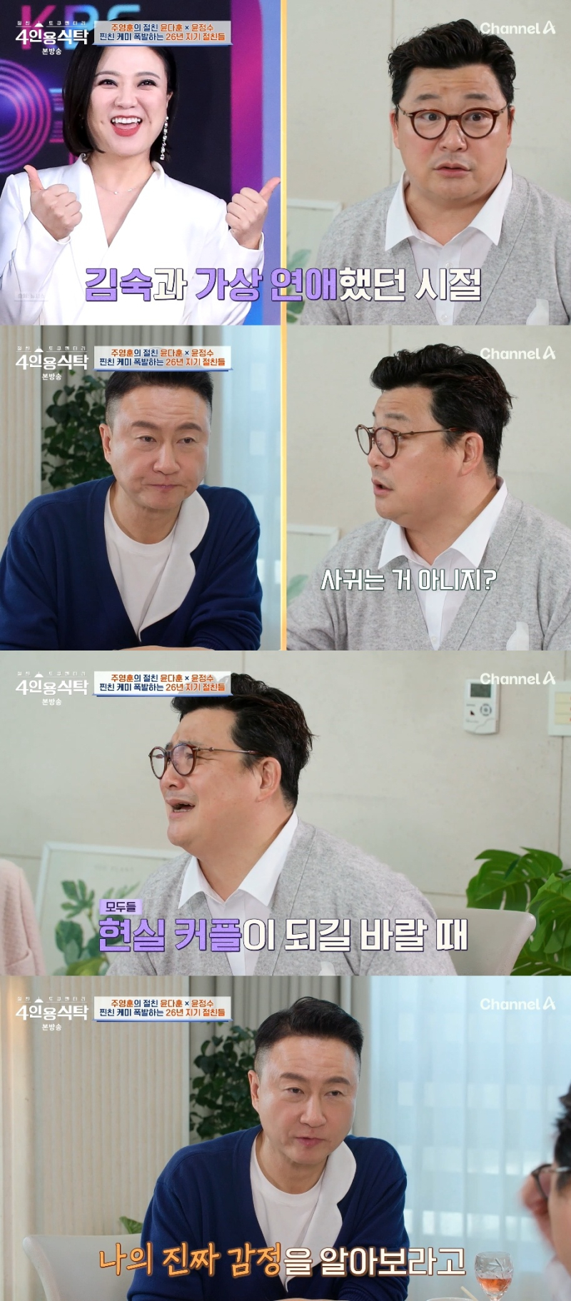 사진=채널A‘절친토큐멘터리4인용식탁’방송캡처.윤정수가김숙과‘가상연애’를이어가던시절,주영훈의현실적인한마디가큰힘이됐다고고백했다.1일방송된채널A‘절친토큐멘터리4인용식탁’에는주영훈의절친윤다훈,윤정수,그리고박경림이게스트로출연해오랜인연을바탕으로한솔직한토크를펼쳤다.이날윤정수는과거김숙과의가상연애당시를회상하며“그때주변에서다‘김숙괜찮잖아,만나보라’고할때가있었다”며“그런데주영훈형이만은‘진짜인지아닌지휩쓸리지말고,네가정확히판단해야한다’고현실적인조언을해줬다.그게정말고마웠다”고말해눈길을끌었다.주영훈은특유의‘자신감200%’모드도이어갔다.그는“내주변재수씨들이아이들교육문제로죄다나한테전화한다.내가정보를다준다”고말해현장을폭소케했다.이에박경림은“AI챗GPT시대가왔는데그럼어떻게하냐”고걱정하자,주영훈은“감성적인걸못하더라.음악을만들긴하던데,조미료없이음식만드는느낌.내가낫다”라며자화자찬을오가는입담으로분위기를달궜다.김지혜기자[email protected]©일간스포츠.무단전재및재배포금지.