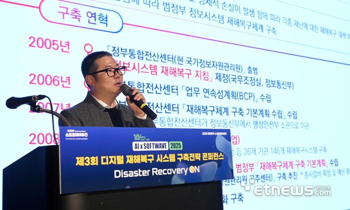 소프트웨이브조직위원회가주최한소프트웨이브10주년특별기획제3회디지털재해복구시스템구축전략콘퍼런스가4일서울강남구코엑스에서열렸다.허승관행정안전부서기관이'AI시대국가디지털인프라재해복구와복원력강화방향'을주제로특별강연을하고있다.김민수기자[email protected]정부가인공지능(AI)시대에맞는재해복구(DR)체계를마련한다.이상탐지등에AI를활용,AI로인프라를지키는체계로도약한다는방침이다.허승관행정안전부서기관은4일서울삼성동코엑스에서열린'디지털재해복구시스템구축전략콘퍼런스'에서'AI시대국가디지털인프라재해복구와복원력강화방향'을주제로한특별강연에서이같은정부정책방향을공유했다.허서기관은“AI시대디지털DR체계설계원칙은'불가피한상황으로언제든시스템이중단될수있다'는전제에서출발한다”며“DR시스템은옵션이아니라기본아키텍처로,시스템구축초기단계부터설계돼야한다”고강조했다.현재DR체계는여러문제점을갖고있다.허서기관은“3년전카카오장애사건의경우에도데이터이중화는있었으나이를관리하는도구의이중화가판교데이터센터내부에만존재해,도구가멈추니시스템전체가멈추는'단일장애지점'한계가있었다”면서“국가정보자원관리원대전본원역시서버DR시스템은일부있었지만센터간이중화가없어서비스장애복구지연을초래했다”고말했다.DR시스템구축시급성에대한인식이부족하고모의훈련역시실시하지만불시에발생하는재해에대한대비는미흡하다는점역시현DR체계한계다.AI시대디지털인프라장애는이보다훨씬복잡하고발생시파장이더크다는게허서기관분석이다.허서기관은“AI시대는초연결·초의존시대로,국민·기업·정부모두디지털에의존하다보니서비스중단은곧행정중단이자경제·사회중단을의미한다”면서“물리화재·전력뿐아니라랜섬웨어·데이터오류·AI모델악용등위협요소역시복합적이라이에맞는DR체계가필요하다”고지적했다.정부는AI시대에맞는DR과기술체계등을확립한다는방침이다.허서기관은“중앙·지역이원화를비롯해멀티리전등국가핵심서비스에대한이중화구축이필요하다”며“공공·행정시스템의클라우드네이티브전환등DR아키텍처를내장설계하는인프라구조전면재설계가시급하고이에맞춰DR과기술체계를마련하려한다”고말했다.AI기술을접목해DR체계를강화하는방안도추진한다.허서기관은“로그나이상징후를AI로상시분석해문제가감지되면이를조기에경보하는시스템과장애유형별로미리정의된상황에따른자동복구체계도마련할것”이라면서“장애·복구데이터학습을통해복구목표시간(RTO)를단축하고재발유형을예측하는모델을도입하는등AI기반관제·자동복구시스템도입도타진할계획”이라고전했다.이어허서기관은“현재AI전략위원회'AI인프라거버넌스·혁신TF'가주도해AI시대DR을포함해전반적인프라혁신방안을준비중”이라면서“조만간발표될혁신방안에구체적내용이더담길것”이라고덧붙였다.이날행사는지난9월말국정자원화재이후DR중요성이높아진가운데개최돼많은관심을받았다.허서기관강연이후국내외DR전문주요기업이핵심기술과구현사례등을발표했다.제트컨버터클라우드는'올인원이종환경재해복구기술과VM전환라이브데모'를주제로실제DR구현사례를공유했다.티맥스티베로는'멀티DBMS시대,리커버리에서액티베이션으로진화하는데이터인프라'를주제로DR핵심인데이터분야DR전략을소개해주목받았다.이밖에도멘텍솔루션이'휴멘에러제로를향한DR운영전략'을,HS효성인포메이션시스템이'빠른헤일오버를위한액티브-액티브데이터센터구축전략',큐브리드가'디지털재해복구구축을위한큐브리드HA활용방안'을주제로각각발표했다.마지막특별강연은케이뱅크가'금융권뱅킹시스템가용성확대전략'을주제로실제구축사례를공유해업계에인사이트를제공했다.김지선기자[email protected]©전자신문.무단전재및재배포금지.