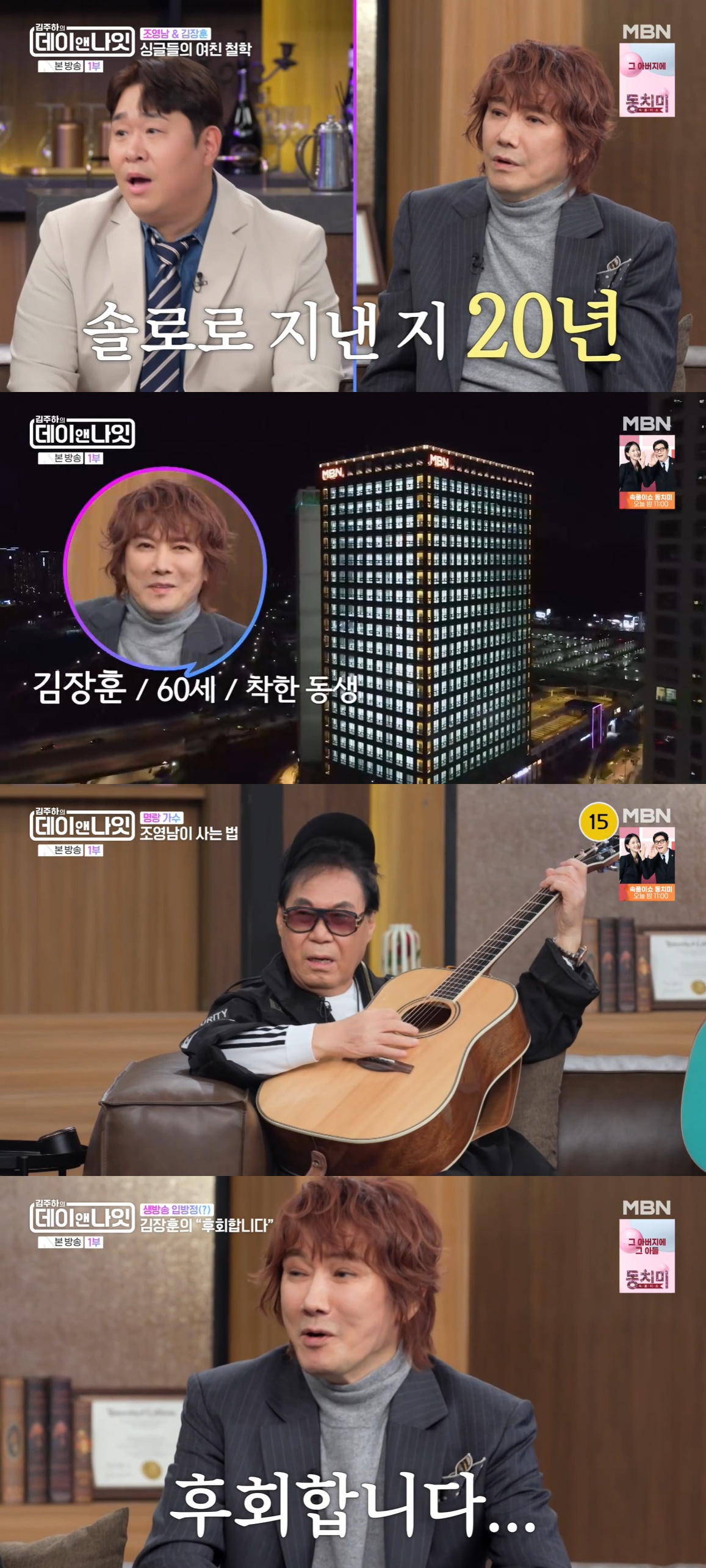 [스타뉴스|안윤지기자]/사진=MBN'김주하의데이앤나잇'방송캡처'데이앤나잇'가수김장훈이솔로20년째임을밝혔다.6일방송된MBN'김주하의데이앤나잇'(이하'데이앤나잇')에서는조영남,김장훈이게스트로출연했다.김장훈은조영남에대해"서로개인적인이슈때문에멀어졌었다.내가기억하는건방송국에서연락이왔는데조영남이내가좋다더라.내가좋아하는선배가날불러줬던거다.그날이후로공연에계속날불러줬다"라고말했다.이어"(조영남이)갑자기방송에서은퇴한다고했다.근데나중에방송끝날때쯤에'은테'였다.이걸방송에서50분내내'은퇴'한다고한거다"라며"말도안되는에피소드도있다.부산에지인결혼식축가를갔다.주례가조영남이더라.이결혼식망하겠다싶었다.그때결혼식때'주례자격이없다.결혼실패한사람이무슨주례냐'라고했다"라고전했다.또한그는"그냥연애가귀찮다.솔로20년째"라며"내가할일이얼마나많은데...(조영남이)이해되지않는다"라고덧붙였다.김주하는"자기무대가조롱거리가됐을때어땠나"라고물었다.조째즈는"젊은친구들은이런창법을처음본거다"라고설명했다.김장훈은"댓글은재밌다.김장훈노인중에제일웃긴다는말이다.모창도재밌다.김아영씨는SNL오디션을그걸로봤다더라.그런말도안되는것들을하는데그냥재밌다"라고했다.또한후회하는점을전하기도.그는"문희준이하던청소년프로그램이었다.선한영향력을펼치는프로그램이다.'김장훈의학창시절은어땠냐'하길래'잘렸는데요?도박하다잘렸어요'라고했다"라며"PD가'후회한다'고한마디만해달라더라.그래서'후회합니다'라고했다.생방송트라우마있다"라고털어놨다.김주하는김장훈에게"200억기부했지만통장10만원이라는말이나왔는데"라고물었다.김장훈은"월세는내는걸깜빡한것뿐이다.내가자칭전통시장홍보대사다.메르스로상권무너졌을때18번공연한거다.돈은받지않았다.그게교묘하게얽혀잘못말한거다.엄마한테해명하느라혼났다.돈이있다고했다.밥한끼에600만원지출하기도했다"라며"기부는좋아서한다.성의없고무책임한말일수도있다.그냥취미라고하겠다"라고밝혔다.한편'데이앤나잇'은매주토요일오후9시40분에방송된다.안윤지기자[email protected]©스타뉴스&starnewskorea.com,무단전재및재배포금지