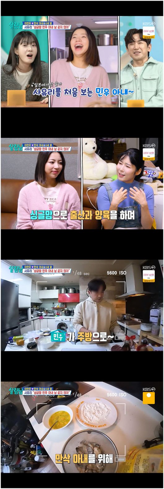 <리뷰:방송시청후작성된리뷰기사입니다.>[OSEN=오세진기자]'살림남2’신화이민우가예비신부이아미를만나고전혀다른모습을공개했다.6일방영된KBS2TV예능'살림남2'에서는출산예정일이얼마남지않은이아미와그런이아미를위해선물로장어를사들고온사유리가등장했다.그리고박서진은이민우의어머니,자신의어머니,지상렬의형수를모시고경주유람을떠났다.박서진의팬들로알려진이들은박서진의휴식에참여했다.이요원은“어머님들한테는박서진이최고다.우리엄마도박서진을정말좋아한다”라며부러워했다.박서진은“그러면올해연말콘서트에초대하겠다”라며이요원에게호의를보였다.박서진은기왕모시게된것,제대로모시고자지상렬과이민우부부에게연락했다.박서진은“그럼형수님은뭐좋아하시냐”라며물었다.지상렬은“우리형수님사진찍어준거좋아한다.연료떨어지면안된다.먹는거좋아한다”라고말했다.영상통화에서민낯으로받은이아미는“저희어머님께서박서진씨노래를정말좋아한다.잘부탁드린다.노래많이해달라”라며시어머니를향한애정을보였다.그영상통화속미짱은박서진의쿠션을안고있었다.박서진은“미짱은떡잎이남다른걸보니까커서훌륭한사람이될거같다”라며자화자찬같은칭찬을건넸다.이민우의지인으로알려진사유리는아들젠을데리고왔다.올해다섯살인젠은여섯살인미짱과함께처음으로심부름을떠났다.미짱은잠시젠을데리고오락실을구경하는등다른길로샜지만,거기에다발음하기힘든채소를사와야하는것에더더욱난항을겪었지만아이들은무사히집으로돌아왔다.사유리는“지금이민우가잘해주고있냐”라며이아미에게물었다.이아미는“새벽에도배고프다고하면밥도만들어주고그런다”라며수줍게웃었다.이민우는배가고프다는이아미를위해새벽에도벌떡일어나딸미짱과함께이아미가먹을떡국을직접쑤기도했다.이날사유리는생생하게살아있는장어를사왔다.그러나장어가파닥거리자이아미,사유리,이민우의어머니는질겁하며손도대지못했다.결국이민우가직접장어를잡아소금을뿌린후장어덮밥을만들기시작했다.이민우는달짝지근한양념을장어에고루발라구운다음,곱게만든지단에찰기가남다른쌀로지은밥을그릇에담았다.이민우는“미짱이고른건알찬미였지만,장어의기름진느낌이랑어울리게일품미를골랐다”라며이아미가잘먹는지지켜보았다.이아미는“밥이랑장어랑정말잘어울린다"라며연신감탄했다.한편이아미는12월4일예정일이었던만큼출산의순간을'살림남2'에서공개할예정으로예고편이나와차주의내용에대해이목을끌었다./[email protected][사진출처]KBS2TV예능'살림남2'방송화면캡처Copyright©OSEN.무단전재및재배포금지.