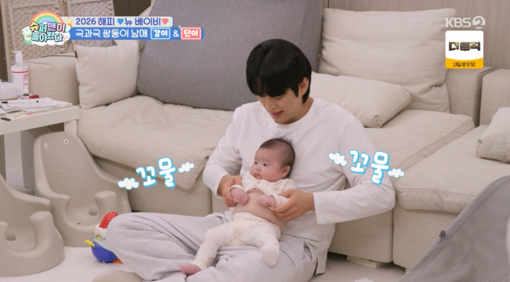 (MHN김설기자)KBS2'슈퍼맨이돌아왔다'의강단남매(강이,단이)가태어난지100일을맞아눈부신비주얼과극강의귀여움으로시청자들의마음을제대로훔쳤다.4일방송된KBS2'슈퍼맨이돌아왔다'에서는어느덧무럭무럭성장해인생100일차를맞이한강단둥이남매의좌충우돌일상이그려졌다.이날방송의주인공인강이와단이는등장부터나란히깜찍한4등신몸매비율을뽐내며시선을강탈했다.커다란눈망울과오똑한콧날,앙증맞은입술까지조그마한얼굴안에오밀조밀하게자리잡은두아이의모습에MC랄랄은"둘이같이있으니귀여움도두배"라며감탄을쏟아냈다.아빠손민수는"이제강단이가4등신이됐다"고기뻐하면서도,"단이가이제명확한의도를가지고나와의사소통을한다"며부쩍성장한쌍둥이의면면을소개했다.특히단이의활약이돋보였다.잠에서깨자마자꼬물꼬물다리를움직이며귀여운율동을선보인단이는이내배가고픈듯우렁찬목소리로일명'단사이렌'을발동시켰다.우유를먹은후에도식사량이부족했는지아빠를향해초롱초롱한눈빛으로옹알이폭격에나섰고,손민수가"밥시간에맞춰먹어야한다"고타이르자필살기인'메롱공격'을감행해결국아빠의항복을받아냈다.이모습을지켜보던김종민은잇몸이마를정도로환한미소를지었고,랄랄이"오빠도육아할수있겠냐"고묻자김종민은차마대답하지못한채주춤해폭소를자아냈다.쌍둥이아빠손민수의고군분투도눈길을끌었다.무수면육아가12시간째이어지는가운데,그는손과발을모두이용해아이들을돌보는'육아고수'의면모를보였다.얼굴에는피곤함이가득했지만,아이들의미소한번에사르르녹아버리는진정한아빠의모습을보여줬다.아이들이잠시잠든틈을타손민수는못다한'삼신상'준비에나섰다.나물세척부터요리까지정성을다하던그는단이가잠에서깨울음을터뜨리자곧바로부엌에서방으로달려갔다.아빠가보이지않으면금세울어버리는단이의아빠바보모습에랄랄은"정말가서도와주고싶다.10분만이라도자고나오라고하고싶다"며안타까워했다.랄랄은김종민에게동반육아도우미를제안했고,김종민은"힘들것같긴하지만꼭가겠다"고약속해훈훈함을더했다.드디어두아이가모두잠든후,그는정성스럽게차린삼신상을올리며삼신할머니와아이들이조용히교감할수있는시간을마련했다.아이들의건강한성장을기원하는초보아빠의진심어린모습은시청자들에게잔잔한감동과힐링을선사했다.사진=KBS'슈퍼맨이돌아왔다'방송화면Copyright©MHN.무단전재및재배포금지.