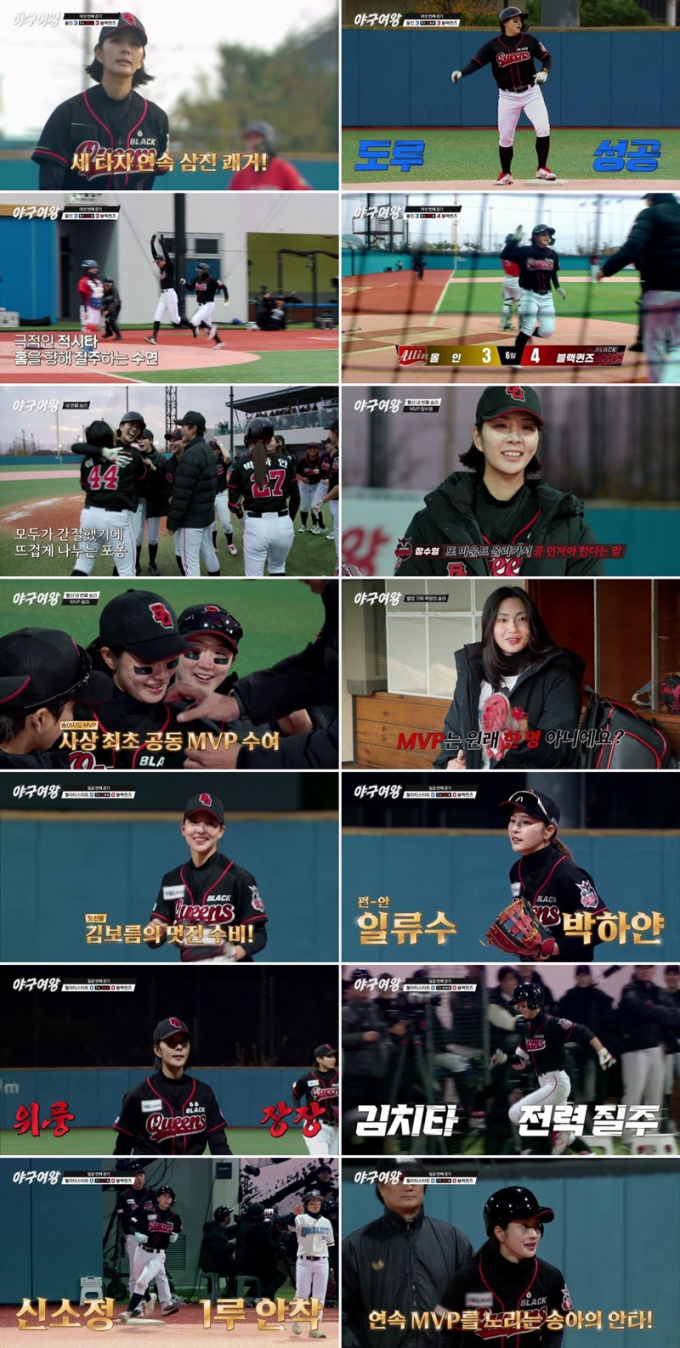‘야구여왕’3:4승리(사진=채널A)‘야구여왕’의블랙퀸즈가장수영의끝내기안타로6차전을3:4로승리,짜릿한2연승을달성했다.3일방송된채널A‘야구여왕’11회에서는‘레전드선출’김민지-김보름-김성연-김온아-박보람-박하얀-송아-신소정-신수지-아야카-이수연-장수영-정유인-주수진-최현미가뭉친국내50번째여자야구단블랙퀸즈가영남권여자야구리그에서3년연속우승·준우승을차지한올인과여섯번째정식경기를치르는현장이공개됐다.이날블랙퀸즈는올인과의초박빙접전끝에장수영의끝내기안타로드라마틱한승리를거뒀으며,곧바로국가대표선수들이포진한‘초강팀’퀄리티스타트와7차전에돌입하는모습으로시청자들을극강몰입시켰다.앞서6차전4회말까지3:3으로팽팽한힘겨루기를이어간블랙퀸즈와올인은5회에서도수비전을펼쳤다.장수영이올인의주자한명을2루로내보냈지만세타자를연속삼진으로잡아내며2이닝연속무실점투구를선보였으나,5회말공격에서주수진·아야카·송아가모두올인의수비에막혀삼자범퇴로물러난것.마지막6회에서장수영은놀라운집중력으로3번타자겸선발투수이혜영의타구를직접처리해1아웃을잡았고,김온아-박하얀도4번타자의내야땅볼을깔끔하게처리해2아웃을만들었다.이후장수영이5번타자를삼진으로돌려보내추가실점없이이닝을마무리했다.“한점만내면이긴다!”라는투지속,블랙퀸즈는마지막공격에나섰다.첫타자김온아가삼진으로물러났지만,이수연이상대실책으로천금같은출루에성공했다.직후추신수감독과윤석민코치의주문에따라이수연은초구도루를감행했고,주특기인슬라이딩으로2루를훔치는데성공했다.다음타자김성연이삼진으로물러나2아웃이되긴했지만,장수영은풀카운트까지끌고가는집념끝에적시타를터뜨리며3:4로승리를견인했다.경기후박세리단장은“지금까지해온모든경기중오늘이가장뜻깊은경기였다,정말고생했다”라고선수들을치하했다.추신수감독은“어떤경기보다만족스러운경기였다,살아있음을느끼게해줘서고맙다”라며박수를보냈다.이날의MVP는‘구원투수’이자‘구원타자’로팀에공헌한장수영에게돌아갔다.이에두경기연속MVP를놓친송아가아쉬움을감추지못하자,추신수감독은송아에게깜짝배지를달아준뒤“송아가없었다면역전의기회도없었을것”이라며공동MVP로호명했다.드디어활짝웃게된송아는며칠뒤훈련장에서만난제작진에게“MVP는원래한명아니냐.단독으로한번만더받아야겠다”라며여전한‘야망’을드러내웃음을안겼다.7차전을앞두고모두가훈련에매진한가운데,블랙퀸즈에비상상황이발생했다.주전유격수주수진이훈련도중손가락골절을당해4주간결장하게된것.더욱이박보람마저손가락골절로깁스를한채등장하자,선수들은“요즘쇠반지(깁스)가유행이야?”라며걱정했다.설상가상으로2루수김온아까지7차전에늦게합류한다고해위기감이고조됐다.이에추신수감독은김온아를대신할2루수자리에김보름을깜짝발탁했다.또,유격수자리에는아야카,1번타자에는김민지를선발했다.새로운라인업이완성되자,블랙퀸즈의7차전상대가상비군을포함한국가대표출신선수3명이포진한강력한투수진의퀄리티스타트임이공개됐다.신소정은“2년동안몸담았던친정팀으로,지금까지상대했던팀과는차원이다를것”이라고귀띔해긴장감을조성했다.드디어7차전이시작됐고,선발투수장수영이마운드에올랐다.직후김보름은첫타자가친내야땅볼을깔끔하게받아서1루수박하얀에게송구해1아웃을만들어냈다.‘더그아웃멤버’김보름의호수비에박세리단장과추신수감독,동료들은누구보다기뻐했다.다음으로는박하얀이1루로굴러온볼을안전하게처리했고,마지막으로장수영이국가대표중견수이자4번타자신누리를삼진으로돌려세워이닝을완벽하게마무리했다.1회말블랙퀸즈의공격에서는김민지와아야카가컨택후전력질주했으나퀄리티스타트의철벽수비에막혀간발의차로아웃됐다.뒤이어신소정과송아가연속안타로2아웃1,2루기회를만들었으나장수영의타구가‘통곡의벽’에부딪히면서득점없이1회가끝났다.0:0의팽팽한샅바싸움속,블랙퀸즈가‘3연승’에성공할수있을지는10일(화)방송되는채널A‘야구여왕’12회에서확인할수있다.서정민기자bnt뉴스연예팀기사제보[email protected]©bnt뉴스.무단전재,재배포및AI데이터활용금지