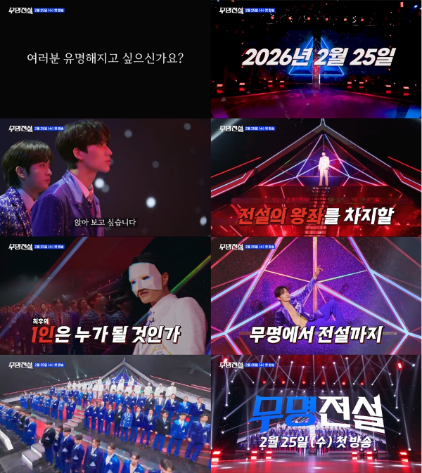 MBN초대형트롯오디션MBN‘무명전설-트롯사내들의서열전쟁’(이하‘무명전설’)이인생을건도전자99인의서열전을예고하며역대급스케일프로그램탄생을알렸다.지난5일MBN공식유튜브채널을통해‘무명전설’티저영상이공개되면서,단한자리의왕좌를두고치열한경쟁을펼칠99인도전자의정체가일부베일을벗었다.“여러분유명해지고싶으신가요?”라는질문과함께시작된티저영상속도전자들은피라미드형태로배치된‘서열탑’의꼭대기를향해시선을모았다.이어“K-트롯의역사를새로쓸99인의사내들,과연이들중누가전설의왕좌에오르게될까요”라는MC김대호의멘트가울려퍼지며묵직한긴장과팽팽한기류를더했다.서열탑최상층을바라보던도전자들은“인생을걸고꼭대기에한번앉아보고싶다”라는각오를내비치며승부를향한의지와각오를드러냈다.이어“올라가자”라는힘찬구호와함께,도전자들은경쟁자들의시선을온몸으로받아내며한명씩계단을올라왕좌에앉았다.이들은각자우승의순간을미리느껴보며기분을만끽했고,왕좌를둘러싼치열한쟁탈전의서막을알렸다.여기에흰가면을쓴정체불명의도전자들이등장해이들의존재가서열구도에어떤변수가될지,또무명가수들이앞으로넘어야할새로운관문이무엇일지에대한궁금증을한층증폭시켰다.‘무명전설’은아직빛을보지못했던무명가수들이단하나의왕좌를차지하기위해모든것을걸고맞붙는초대형트롯서바이벌이다.실력은물론존재감과스타성,무대장악력까지매라운드증명해야하며,그에따라서열이끊임없이뒤바뀌는냉정한승부가펼쳐진다.특히‘무명전설’은단순한오디션을넘어K-트롯판도를뒤흔들새로운얼굴의탄생을목표로한다는점에서주목된다.무명에서전설로도약할단한명의주인공이탄생하는위대한여정의시작을알리며기대감을높이고있다.한편MBN‘무명전설-트롯사내들의서열전쟁’은오는25일수요일밤9시40분첫방송된다.MC로는장민호와김대호가나서며,남진·조항조·주현미·신유·강문경·손태진등트로트계를대표하는전설들이심사위원으로참여해무게감을더한다.최종우승자에게는‘집’을포함한역대급특전이예고돼치열한경쟁을예감케한다.[MBN스타박소진기자[email protected]]<CopyrightⓒMBN(www.mbn.co.kr)무단전재및재배포금지>Copyright©MBN.무단전재,재배포및AI학습이용금지.