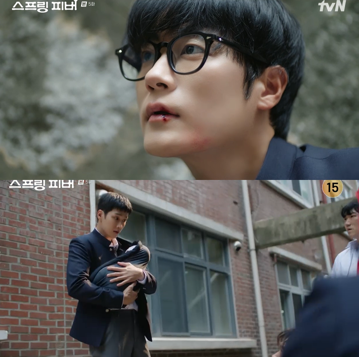 '스프링피버'의앙숙선재규와최이준의반전과거공개(MHN김소영기자)'스프링피버'안보현과차서원의과거가일부공개됐다.19일tvN'스프링피버'5화에서는체육대회에참가한선재규(안보현)와최이준(차서원)이줄다리기로맞붙은장면이전파를탔다.이날줄다리기경기가막상막하로이어지던중재규와이준은줄의가장앞쪽으로이동했다.최이준은"넌언제나믿음을주고배신한다"며선재규를비난했다.마치과거부터이어져온불신인듯한발언에선재규는"배신을당한건나다"라고말해최이준을의아하게했다.서로다른기억을가지고있는두사람.이날은두사람이과거절친해졌던일화일부가공개됐다.때는고등학생시절,최이준은학교폭력을당하던전교1등이었다.이날도여느때와다름없이학교뒤편공터에서일진들에게몰매를맞고잇던최이준을구해준건다름아닌선재규였다.일진들도벌벌떠는위력을가진선재규는아이를안은채로일진무리를공격하더니"최이준은내가육아선생님으로모시는분이다.얘건드리려면나부터넘고가라"고말하며그를보호했다.이후최이준은선재규가일하는곳에따라가"너는나를지켜주고,나는너를가르쳐준다.이러면우리둘사이에공정한거래가성립될거같다"고말하며공부를가르쳐주겠다고말했다.선재규가조카선한결(조준영)을지키기위해대학에가지않겠다고하자최이준은"등록금은내가낼테니,읽을시간없으면들어"라며교과서를읽기시작했다.그는"산골로가는것은세상한테지는것이아니다.세상같은건더러워버리는것이다"라며백석의시'나와나타샤와흰당나귀'를읽어주고선재규는마음에동요를느껴그문구를따라읽는다.두사람이절친한친구가된순간이었다.이처럼끈끈했던두사람이어떻게앙숙처럼변하게된건지궁금증을자아낸다.한편tvN'스프링피버'는찬바람쌩쌩부는교사윤봄과불타는심장을가진남자선재규의얼어붙은마음도녹일봄날의핫핑크빛로맨스물이다.Copyright©MHN.무단전재및재배포금지.