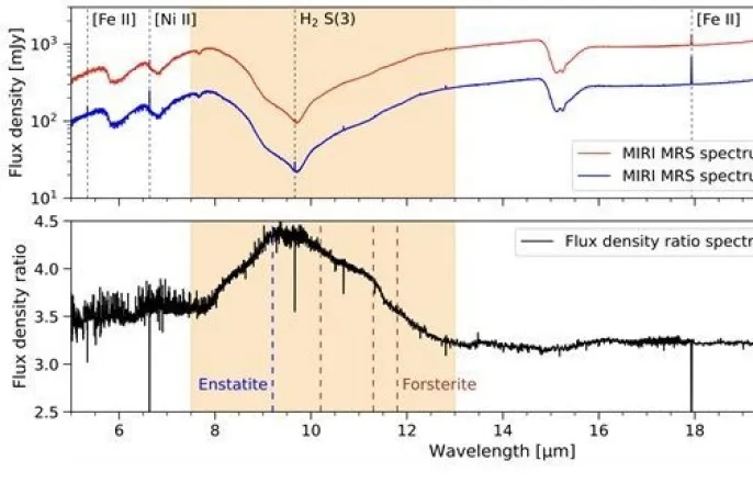곽노필의미래창서울대연구진,제임스웹관측통해규명결정질규산염만드는뜨거운폭발확인원반외곽으로운반하는원반풍도발견국내연구진이원시별이태어나성장해가는단계에서규산염이결정화하는과정을처음으로확인했다.그림은행성들이형성되고있는원시행성원반으로둘러싸인어린별상상도.유럽남방천문대(ESO)제공이제막형성되고있는원시별(태아별)은주변가스와먼지를일정한속도로꾸준하게빨아들이는것이아니라간헐적강착을통해성장한다.간헐적강착이란태아별이평소엔천천히물질을빨아들이다(휴지기)특정시기가되면엄청난양을한꺼번에빨아들이는(폭발기)과정을가리키는말이다.폭발적인강착이일어나면별은밝아지고,이과정에서방출되는막대한에너지가별을둘러싸고있는원시행성계원반을뜨겁게가열하게된다.이로인해행성과소행성,혜성의성분이되는원반물질의화학·광물학적상태가크게바뀐다.지구와같은암석형행성이나혜성에서쉽게볼수있는결정질규산염은이런과정을통해형성됐다.지구의지각을구성하고있는물질의약90%를차지하는규산염의대부분이결정질이다.그러나원시별의이런성장과정은이론적예측일뿐그동안실제로확인하지는못했다.서울대물리천문학부이정은교수연구팀이시별이태어나성장해가는단계에서규산염이결정화하는과정을제임스웹우주망원경((JWST)관측을통해처음으로확인해국제학술지네이처에발표했다.(그림2)폭발기에원시행성계원반에서일어나는규산염결정화와이동과정을나타낸그림이다.원반의왼쪽은원반내부의온도분포와규산염종류별결정화가일어나는영역을표시했다.연두색은결정질휘석,초록색은결정질감람석영역이다.원반의오른쪽은결정질규산염이혼합되고이동하는과정을나타낸다.회색은비결정질규산염먼지,초록색과연두색구형입자는각각결정질감람석과결정질휘석이다.이정은교수제공별의밝기가주기적으로변하는데착안결정질규산염은600도이상의고온환경에서만형성된다.그런데온도가매우낮은태양계외곽에있는혜성에서도결정질규산염이발견된다.고온환경에서형성된물질이어떻게태양계외곽까지이동했는지에대해선난류혼합이나대규모물질운반,국지적가열등여러가설이나왔다.하지만이것역시그동안관측을통해검증하지는못했다.연구진은이에대해서도원반안쪽에서만들어진물질이외곽까지이동해갈수있는운반통로(원반바람)를함께발견함으로써초기태양계형성의비밀을풀수있는중요한증거를확보했다.이번연구는두꺼운가스와먼지구름의안쪽을세밀하게들여다볼수있는제임스웹우주망원경의중적외선분광기(MIRI)덕분에가능했다.연구진은1420광년거리에있는뱀자리성운의원시별EC53을이론을검증할수있는천체로삼았다.이별이18개월주기로밝기가변화하는것으로보아,폭발기와휴지기를명확히구분해확인할수있는천체로판단했다.제임스웹우주망원경으로관측한원시별EC53의중적외석분광스펙트럼.위그림에서빨간색이폭발기,파란색이휴지기다.아래그림은폭발기와휴지기사이의밝기비율을나타낸그래프다.10μm파장대부근에서큰증가가확인된다.이정은교수제공원반풍타고원반안쪽에서바깥쪽으로연구진이2023년10월휴지기와2024년5월폭발기를선택해관측한결과,폭발단계에서만결정질광물의스펙트럼이검출되는것을확인했다.이는규산염결정화가원시별에가까운뜨거운원반안쪽에서실제로일어났다는걸뜻한다.연구진은또원반중심부의고속원자제트와그바깥쪽의저속분자유출구조도확인했다.이는원반안쪽에서생성된결정질규산염을차가운외곽으로운반할수있는원반풍이존재한다는걸뜻한다.원반풍은원시행성원반의안쪽영역에서가열이나자기장작용으로발생해바깥쪽으로흘러나가는가스흐름을말한다.이번발견은폭발기와휴지기스펙트럼의밝기비율을비교하던중그형태가20년전스피처적외선우주망원경으로관측한혜성의규산염방출구조와비슷하다는점을알아차린것이결정적힌트가됐다.연구진은2000년대초반부터스피처,허셜,아카리적외선우주망원경을관측해온연구경험이스펙트럼을해석하는안목을넓혀줬다고밝혔다.연구를이끈이정은교수는“이번연구성과는오랜기간별이태어나는과정을연구하면서축적된경험이과학적발견으로이어진사례”라며“앞으로후속관측을통해규산염결정화와물질이동과정의보편성을검증할계획”이라고말했다.*논문정보Accretionburstscrystallizesilicatesinaplanet-formingdisk.DOI10.1038/s41586-025-09939-3곽노필선임기자[email protected]©한겨레신문사AllRightsReserved.무단전재,재배포,AI학습및활용금지