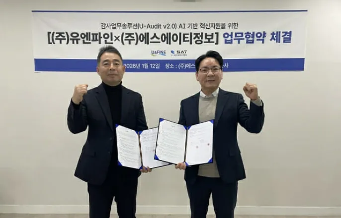 '유오딧버전2.0'에비정형데이터추출및자산회기술융합제공(지디넷코리아=방은주기자)감사업무솔루션전문기업유엔파인(대표조기현)은AI데이터플랫폼전문기업에스에이티정보(대표오세용)와손잡고인공지능(AI)기반감사업무혁신을위한전략적업무협약(MOU)을체결했다고13일밝혔다.12일이뤄진이번협약은유엔파인의차세대감사업무솔루션‘유오딧버전2.0(U-Auditv2.0)’에에스에이티정보의비정형데이터추출및자산화기술을융합,공공및금융기관에최적화한‘지능형AI감사환경’을제공하기위해마련됐다.10년감사업무노하우와독보적AI데이터기술만남유엔파인의‘유오딧v2.0’은감사계획수립부터착안사항도출,감사문서초안작성,심의및이행상황관리까지전과정을원스톱으로처리하는통합디지털플랫폼이다.최근경기도의‘스마트감사플랫폼’과강원랜드의생성형AI기반‘스마트감사시스템(KLAS)’을성공적으로구축하며지자체와공기업등공공분야AI전환(AX)의표준모델을제시하고있는유일한기업이라는평가를받고있다.에스에이티정보는문서뷰어(Docu-GATE),개인정보비식별화,광학문자인식(OCR)기술력을바탕으로최근‘AI데이터플랫폼’기업으로도약하고있는유망기업이다.특히HWP,MS오피스,PDF등원천파일(NativeFormat)에서포맷변환없이데이터를직접추출하는독보적인기술을보유,AI학습데이터의정합성과보안성을동시에확보하고있다.강훈유엔파인공공사업부문부문장(왼쪽)과오세용에스에이티정보대표가감사업무솔루션(U-Auditv2.0)의AI기반혁신지원을위한업무협약을체결한뒤파이팅을외치며기념촬영을하고있다.감사업무의완전한AI전환…예방적·과학적감사실현양사는이번협약을통해△비정형감사문서데이터자산화△AI학습용감사특화데이터셋구축△개인정보비식별화기술을적용한안전한AI환경조성△생성형AI를활용한감사보고서자동생성및이상징후포착등‘5대핵심AI융합기술’구현에협력할계획이다.특히에스에이티정보의기술력을통해공공기관내방대한비정형문서들을AI가즉시학습가능한형태로변환,유엔파인의유오딧솔루션내에서더욱정교한과거사례조회와고도화된감사아이디어도출이가능해질전망이다.공공AI시장표준선도할것강훈유엔파인공공사업부문부문장은“경기도와강원랜드등대규모프로젝트를통해검증된유엔파인의AI솔루션이에스에이티정보의고도화된데이터추출기술과결합하게돼매우기쁘다”며“단순한시스템구축을넘어감사업무의정확성과신뢰성을획기적으로높이는현장밀착형AI기능을지속적으로고도화하겠다”고밝혔다.오세용에스에이티정보대표는“유엔파인과의협력은에스에이티정보가쌓아온문서분석기술퍼즐을완성해실질적인AI성과를창출하는중대한변곡점”이라며“공공기관이안심하고AI를도입할수있도록신뢰가능한데이터인프라를제공해올해매출2배성장의발판을마련하겠다”고강조했다.한편,양사는이번협약을기점으로주요공공기관및지방자치단체,금융권을대상으로공동마케팅을전개하고,향후클라우드(SaaS)기반의AI감사서비스를통해글로벌시장진출까지도모한다는구상이다.방은주기자([email protected])Copyright©지디넷코리아.무단전재및재배포금지.