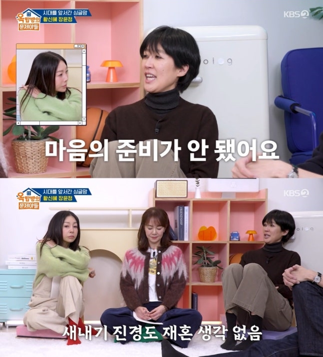 ▲출처|KBS2'옥탑방의문제아들'캡처[스포티비뉴스=최신애기자]홍진경이재혼에선을그었다.15일KBS2'옥탑방의문제아들'에는황신혜,장윤정이출연했다.이날황신혜,장윤정이출연한만큼이혼에대한이야기가자연스레나왔다.특히황신혜가이혼후연애에대해솔직하게밝혀눈길을끌었다.그러면서황신혜는"결혼은아닌데연애는하고싶다"고밝히면서,질문을홍진경에게토스했다.홍진경도최근이혼했던터.이에홍진경은민망해하며"저는아직마음의준비가안돼있다.재혼생각이없다"고답했다.한편홍진경은지난2003년5세연상사업가와결혼했으나22년만에파경했다.<저작권자ⓒSPOTVNEWS.무단전재및재배포금지>Copyright©스포티비뉴스.무단전재및재배포금지.