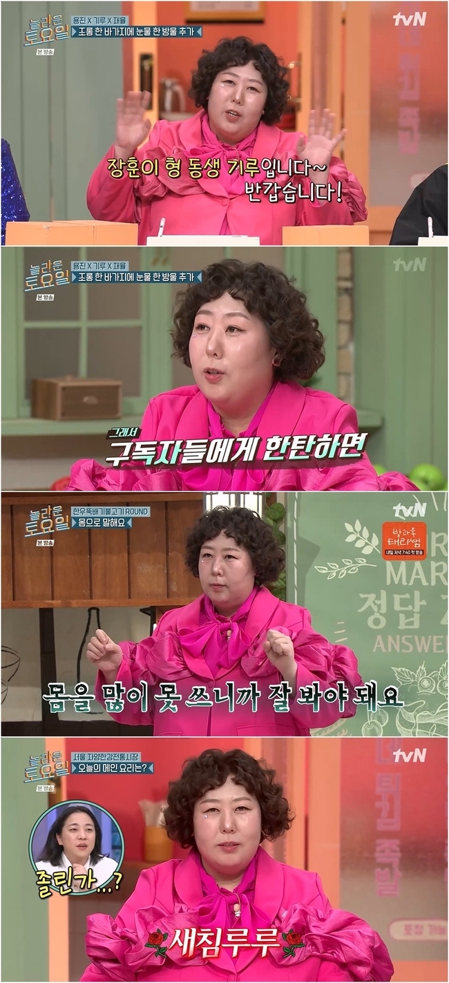 사진제공=tvN‘놀라운토요일’캡처[뉴스엔박양수기자]코미디언신기루가남다른입담으로토요일저녁을뜨겁게달궜다.지난21일(토)방송한tvN예능프로그램‘놀라운토요일’(이하‘놀토’)에출연해뛰어난예능감으로안방극장을웃음바다로만들었다.이날신기루는본격적인시작에앞서남다른기온철학을전해눈길을끌었다.과거두번의출연당시높은촬영장기온때문에힘들었다고고백한그녀는에어컨에가장가까운자리를배정받았지만시원하지않다며아쉬움을토로했다.이어“입춘이지났으니바로파워냉방을부탁한다”고말해시작부터현장을폭소케했다.특히신기루는평소진행하는유튜브채널‘조롱잔치’의타깃이되어조롱을가장많이당하는상황에대해서도대인배다운면모를뽐냈다.그녀는“대장내시경을소방차호스로하느냐는댓글도있다”며기상천외한반응들을언급했다.그러면서“이제는오히려놀려주는게더재밌고즐겁다”며웃음을위해자신을아끼지않는배포로훈훈함을자아냈다.게임이진행되자신기루의오답퍼레이드가본격적으로펼쳐졌다.그녀는‘몸으로말해요’게임도중영화‘태극기휘날리며’를‘태극기부대끼며’라고잘못말해현장을초토화시켰으며,‘라이언일병구하기’문제에서멤버가총모양으로자신을겨누자“옥자”라고자폭하며웃음쐐기를박았다.가사맞히기에서도신기루의입담은멈추지않았다.박명수와소찬휘의곡‘바보야’의작사가가박명수라는힌트를듣자마자“가사에‘썩어버린’이맞을것같다”고추측해웃음을유발했다.이어진디저트게임초성퀴즈에서는“엉덩이부어요?”라는엉뚱한오답을던진뒤,“나중에작가님에게따로문자를보내겠다”며끝까지‘예능집착광’다운면모로활약했다.이처럼독보적인캐릭터와거침없는입담으로독보적인존재감을드러내고있는신기루가또어떤모습을보여줄지더욱기대가모인다.뉴스엔박양수yasupaen33@기사제보및보도자료[email protected]ⓒ뉴스엔.무단전재&재배포금지Copyright©뉴스엔.무단전재및재배포금지.