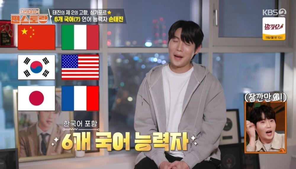 [TV리포트=남금주기자]가수손태진이음악가집안을공개한가운데,6개국어를한다고고백했다.16일방송된KBS2'신상출시편스토랑'(이하'편스토랑')은이연복,오마이걸효정,윤보미,붐등이출연했다.이날서울대성악과학사,서울대대학원석사출신손태진이등장했다.'팬텀싱어'와트로트서바이벌'불타는트롯맨'에서우승한손태진은"먹는걸사랑하고맛에집착하는'편스토랑'의애청자"라고소개했다.이연복은"서울대나왔는데,머리좋냐"고직접적으로물었고,손태진은"머리가좋은진모르겠지만,센스만큼은한센스하다"고답했다.이어윤보미가"음악만큼요리도잘하냐"고묻자손태진은"맛있는걸먹는걸좋아한다.주변에서나름미식가라고하는데,맛집찾아다니는걸좋아한다"라며"요리실력은아직부족한데,'편스토랑'에출연한특별한이유가있다"고말해기대감을높였다.이어손태진은집을최초로공개했다.아침에일어난손태진을본MC들은"초리얼아침"이라고했고,손태진은자신의모습에충격을받았다.손태진은음악가집안을공개했다.이모할머니는가수심수봉,사촌동생은'팬텀싱어4'우승자성악가진원,조카는빌리의시윤이라고.MC들은"DNA가가수DNA네","온집안이음악가집안"이라고놀랐고,손태진은"어떻게하다보니그렇게됐다"라고말하기도.일어난손태진은자막없이2배속으로미국뉴스를봤다.다음은프랑스,중국뉴스.영어,불어,이태리어,중국어,일본어,6개국어능력자라고.이에손태진은"이게왜방송나갈때마다하나씩늘어나냐"라고당황했다.손태진은"16년정도해외에서살았다.초,중,고다싱가포르에서보냈다"라며"태어난건서울인데,싱가포르에서자랐다.대학교진학이저한텐첫한국생활이었다"고밝혔다.손태진은"싱가포르에있는중국학교,한국학교,미국학교에다녔다"라며싱가포르에서영어,중국어를습득했다고밝혔다.프랑스대학에합격한손태진은서울대성악과에진학했다고.손태진은"1년넘게이탈리아에서유학하면서아카데미에서수료했다.다양한문화를접하면서컸다"고했고,MC들은"사기캐(사기캐릭터)"라고놀랐다.남금주기자[email protected]/사진=KBS2'편스토랑'Copyright©TV리포트.무단전재및재배포금지