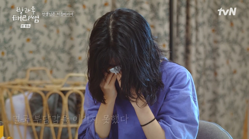 [스타뉴스|김정주기자]/사진=tvN예능프로그램'방과후태리쌤'배우김태리가녹화도중부담감을이기지못하고눈물을터뜨렸다.22일첫방송된tvN예능프로그램'방과후태리쌤'1화에는방과후연극반선생님으로초등학생아이들을가르치게된김태리의모습이그려졌다.이날김태리는문경에위치한용흥초등학교의초대연극반선생님으로부임한뒤학교인근에위치한숙소에짐을풀었다.첫수업을앞두고김태리는1인극을해야한다는부담감에한숨을쉬었다.그는수업4시간전,준비된대본이없다는사실을깨닫고입을다물지못했다./사진=tvN예능프로그램'방과후태리쌤'김태리는망원경으로학교운동장에서뛰노는아이들을보더니"갑자기겁이나더라.제가수업을해야한다는점,그게바로오늘이라는점,그리고나는준비가안됐다고느껴진다는점.누가꿈이라고해줬으면좋겠다"라며긴장감을감추지못했다.덜컥와닿은선생님의무게에김태리는결국눈물을쏟았다.그는눈물을뚝뚝흘리며"이생각을어떻게없애지?너무무섭다.미치겠네"라고울상을지었다.제작진과의인터뷰에서김태리는"걷잡을수없이불안감이커지면서마음이복잡해졌고,눈물이멈추지않더라.제가선생님은난생처음이다"라고당시를떠올렸다.김정주기자[email protected]©스타뉴스&starnewskorea.com,무단전재및재배포금지