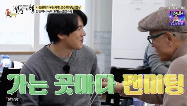 TV조선‘식객허영만의백반기행’TV조선‘식객허영만의백반기행’TV조선‘식객허영만의백반기행’[뉴스엔유경상기자]고수가박수갈채가나오는미모에도길거리캐스팅이아닌스스로프로필을돌리며배우의꿈을키워온연기열정으로반전을선사했다.2월22일방송된TV조선‘식객허영만의백반기행’에서는허영만작가와배우고수가부산에서만났다.허영만이“평소여행많이하냐”고묻자고수는“너무좋아한다.2006년,2007년전국산을많이다녔다.등산도올라갔다가내려오는게아니라능선을타고종주를하다가텐트펴고잔다”고답해공감대를형성했다.허영만도캠핑다닌지40년이넘은프로.두사람이부산에서처음으로찾아간식당은회백반을전문으로판매하는식당이었다.고수가식당에들어서자마자손님들의시선이집중됐고감탄사와박수갈채가터져나왔다.허영만도고수를보고“잘생겼네.이탈리아가면다비드상이있는데”비슷하다고감탄했다.회백반은근처회사원들을대상으로1인용회를먹을수있게끔만든메뉴.대를이어내려오며오랜단골손님들이많기때문에쉽사리가격을올릴수도없다며저렴한가격과푸짐한향으로감탄을자아냈다.여기에식당사장과딸들이고수에게인사를하겠다며다가와팬심폭발하자허영만은“나갈거야”라며처음보이는질투심으로웃음을안겼다.다음으로찾아간식당은돼지국밥식당으로허영만은“‘식객’만화그릴때돼지국밥취재한데”라고소개했다.고수가“왜돼지국밥이부산에서생긴거냐”고질문하자허영만은“6.25때생긴거다.부산만남아서.피란민들이먹고살기위해서만든게돼지국밥”이라고설명했다.고수는수육맛에먼저감탄하며“냄새를전혀못느끼겠다.거짓말조금보태면치즈같다”고말했고,허영만이“그건많이보탰다”며웃었다.그사이또한팬이다가와고수에게실물을봐서좋다며팬심을전했다.허영만은고수에게“처음부터연기자가꿈이었냐.길거리캐스팅당한거냐”고질문했고,고수는길거리캐스팅은아니라며“저도프로필사진을찍어서많이돌렸다.오디션도많이봤다”고했다.허영만은“그러니까앉아서기다린게아니네”라며감탄했다.고수는“그러다가연극한번해보지않을래?백설공주와일곱난쟁이중에서세번째난쟁이를했다.왕자님이있을거아니냐.일곱난쟁이가‘오늘은공주님이어디계셔’그러면왕자가말을타고멋있게선다.누구였냐면박해일이었다.보름정도난쟁이로연극을했다”고고백했다.허영만은가장힘들었던작품에대해서도질문했고,고수는드라마‘피아노’를꼽으며“연기경험이많지않았다”고이유를댔다.극중고수는이복누나를좋아하는역할이었는데밝은멜로는안해본것같다며“주로가슴아픈걸했다”고말했다.영화‘반창꼬’에서는아내와사별한후에이뤄지는멜로라아픔이있었다고.고수는곧공개되는신작‘리버스’역시약혼녀가사고로기억상실증에걸린상태에서이야기가시작되는미스터리멜로라고소개하며기대감을더했다.이후마지막으로허영만과고수가찾아간식당은고등어회를판매하는곳.고수는고등어회를정식으로먹어본적은없다며“밀도가있는느낌”이라고표현했고허영만은고수에게사인을한책을선물하며“국민생선고등어처럼국민배우고수가되길”응원했다.(사진=TV조선‘식객허영만의백반기행’캡처)뉴스엔유경상yooks@기사제보및보도자료[email protected]ⓒ뉴스엔.무단전재&재배포금지Copyright©뉴스엔.무단전재및재배포금지.