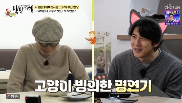 TV조선‘식객허영만의백반기행’TV조선‘식객허영만의백반기행’[뉴스엔유경상기자]고수가고양이에게고등어를갈취당한경험을고백했다.2월22일방송된TV조선‘식객허영만의백반기행’에서는허영만작가와배우고수가부산에서만났다.허영만은고등어회를좋아한다며고수를고등어회전문식당으로안내했다.고수는“힘이굉장히좋다.아무리씹어도안찢어지는것같다.다른회들이깔끔하고가볍고단순했다면밀도가있는느낌”이라고고등어회를표현했다.허영만은“그렇게느낄수있다.고등어가기름이많다.특히겨울철에기름이많다”며“고등어회를처음먹어보는거냐”고질문했고,고수는“조금먹어봤다.예전부터고등어회가귀하다고해서”라고답했다.이어고수는“예전에제가‘그린로즈’라는드라마를했다.첫촬영하는날서울의어떤달동네에서촬영했다.제가고등어를한봉지사서어머니에게찾아가는장면이었다.기다리고있는데갑자기앞에서고양이가날보고비틀거리면서.야옹하면서날잡아먹을듯이오는거다”며귀여운고양이연기를선보여웃음을안겼다.하지만결말이반전.고수는“너무마음이안좋았다.무서워서.잠깐사이에고등어를주고돌멩이를넣고뛰어갔다”며배고픈고양이가너무무서워서고등어를주고도망친경험을고백해웃음을더했다.(사진=TV조선‘식객허영만의백반기행’캡처)뉴스엔유경상yooks@기사제보및보도자료[email protected]ⓒ뉴스엔.무단전재&재배포금지Copyright©뉴스엔.무단전재및재배포금지.