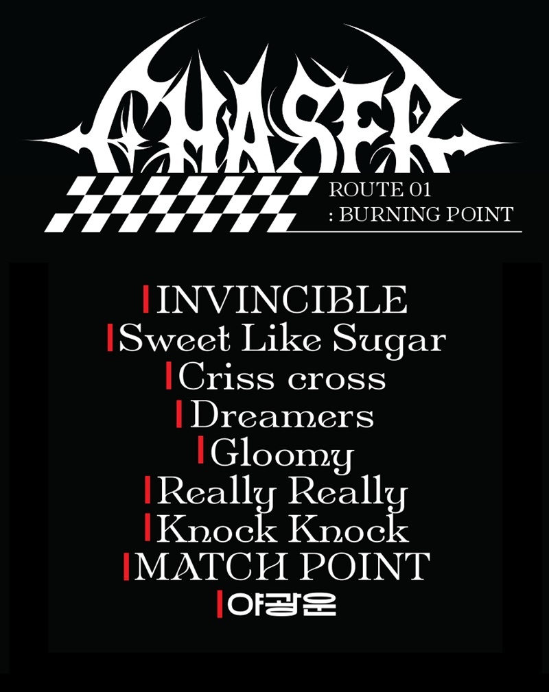 [OSEN=유수연기자]5인조신예보이그룹체이서(CHASER)의데뷔앨범전곡스펙트럼이공개됐다.소속사하울링엔터테인먼트측은지난22일과오늘(23일)체이서(강빈,케이스케,렌,윤성,시훈)의첫번째미니앨범‘ROUTE01:BURNINGPOINT(루트01:버닝포인트)’트랙리스트와하이라이트메들리를게재했다.데뷔앨범‘ROUTE01:BURNINGPOINT’는세상을향해불을지피는듯한체이서의에너제틱한무드와열정,그리고음악적방향성을집약한첫번째챕터로,타이틀곡‘INVINCIBLE(인빈시블)’을비롯해총9트랙으로구성됐다.타이틀곡‘INVINCIBLE’은업템포의Pop-rock에기반을둔곡으로,강렬한기타리프와묵직한베이스그리고터질듯한훅이돋보인다.세상을불태울만한에너제틱한무드,그리고체이서멤버들의시원한보컬이완벽한조화를이룬다.이밖에도달콤한사랑을표현한신스팝‘SweetLikeSugar(스위트라이크슈거)’,앞만보고직진하는패기를풀어낸힙합트랩‘Crisscross(크리스크로스)’,멈추지않고꿈을향해달려가는소년들의다짐을그린‘Dreamers(드리머스)’,이별후담담하게전하는마음고백‘Gloomy(그루미)’,순수한사랑고백을얹은밝은밴드팝‘ReallyReally(릴리릴리)’,재즈피아노와청량한기타가인상적인미디엄템포트랙‘KnockKnock(노크노크)’,매순간자신과싸우며어제보다더강해지고,끝까지꿈을좇는체이서의이야기를풀어낸‘MATCHPOINT(매치포인트)’,청춘과성장,희망을키워드로어둠속에서도서로를비추며나아가는순간을녹인‘야광운’까지다채로운장르의수록곡이담겼다.이어공개된하이라이트메들리에는각트랙의하이라이트구간이담기며앨범전반의분위기를압축적으로보여줬다.영상은강렬한속도계그래픽과함께곡마다달라지는무드변주를선명하게전달하며데뷔앨범을통해펼쳐질체이서의가능성을기대하게했다.짧은영상임에도불구하고폭발적인사운드,청량한멜로디,감성적인보컬이연이어흘러나오며역대급플레이리스트를예고했다.체이서는이번데뷔앨범을통해단순한신예가아닌뚜렷한색깔과서사를지닌팀으로초석을쌓겠다는각오다.불꽃처럼타오르는출발점에서이들이어떤세계관을그려나갈지이목이집중된다.한편,체이서는오는25일오후6시첫번째미니앨범‘ROUTE01:BURNINGPOINT’로정식데뷔한다./[email protected][사진]하울링엔터테인먼트Copyright©OSEN.무단전재및재배포금지.