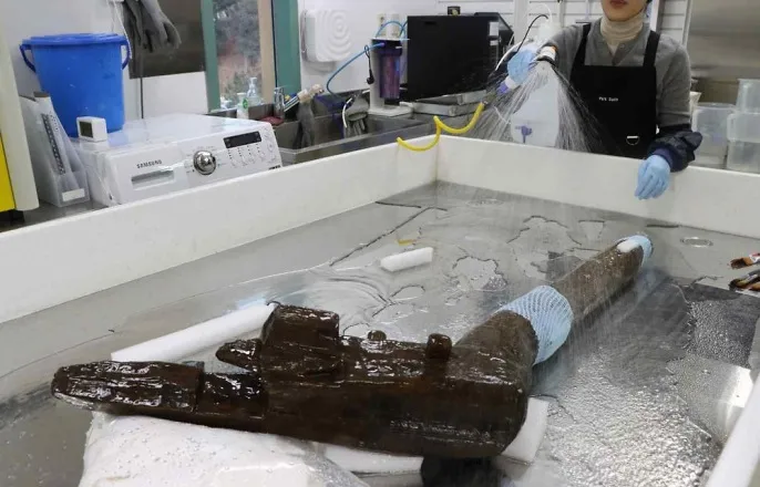 국립문화유산연구원,2023년출토된삼국시대쟁기보존처리한반도북부서주로쓰던'눕쟁기'추정…고구려-몽촌토성역사주목보존처리과정[국립문화유산연구원제공.재판매및DB금지](서울=연합뉴스)김예나기자=백제한성도읍기(기원전18년∼475년)유적인서울몽촌토성에서발견된삼국시대쟁기가전문가손길을거쳐본래모습을찾았다.국립문화유산연구원문화유산보존과학센터는몽촌토성집수지에서출토된삼국시대쟁기에대한보존처리작업을약2년만에마쳤다고24일밝혔다.보존처리는유물의원형을되살리고손상을막기위한과정을일컫는다.표면의먼지나오염물을제거하고,약해진부분을보강하는작업등이이뤄진다.이번에작업을마친쟁기는2023년6월출토된유물이다.식수를비롯해필요한물을저장하는공간인집수지에서그동안발견된쟁기4점중3번째로발견된것으로,비교적완전한형태로주목받았다.보존처리전(왼쪽)과후(오른쪽)모습[국립문화유산연구원제공.재판매및DB금지]쟁기는술(몸체)과날,손잡이로이뤄져있었으며손잡이부분에는쟁기의몸들이빠지지않도록감아놓은줄로추정되는끈형태의유기물도확인됐다.유물구조를볼때술부분이지면과평행을이루는눕쟁기로추정된다.이런형태는한반도북부지역에서주로사용돼온것으로전한다.조사결과쟁기는물리적강도가우수한상수리나무류의재료를써자귀,도자등목공도구를활용해만든것으로파악됐다.방사성탄소연대를측정한결과,제작연대는534∼640년사이로확인됐다.학계안팎에서는고구려가몽촌토성을일시점유했을당시를주목하고있다.X-선조사사진오른쪽은날부분을확대한것[국립문화유산연구원제공.재판매및DB금지]센터관계자는"백제의대표유적인몽촌토성내에서확인된집수지가고구려점유시기에축조돼쓰였다는기존발굴조사결과와도일치하는것"이라고설명했다.비교적형태를유지하고있으나,쟁기는1천년넘는긴시간동안땅속에묻혀있으면서수분과미생물의영향을받아상태가좋지않았다.보존처리를시작하기전,곳곳에서수축과변형이발견되기도했다.나무재질과강도도약화돼안전한상태로되살리는게시급했다.이에센터는유물외형과구조를유지하면서도내부를강화하고,영하40℃안팎의저온에서급속동결한뒤진공상태에서수분을제거하는식으로작업했다.날부분의가공흔[국립문화유산연구원제공.재판매및DB금지]실물접합이어려웠던날부분은3차원(3D)스캔방식으로가상복원해쟁기가제작됐을당시의원형을추정할수있는근거도남겼다.보존처리를마친유물은소장처인한성백제박물관으로돌아갈예정이다.향후유물은전시와연구자료로활용되며민속학,농업기술사등여러분야에서중요한연구자료가될것으로보인다.센터관계자는"다양한출토문화유산을체계적으로보존처리해문화유산의소중한가치가후대에온전히전해질수있도록노력할것"이라고말했다.보존처리과정[국립문화유산연구원제공.재판매및DB금지][email protected]▶제보는카톡okjeboCopyright©연합뉴스.무단전재-재배포,AI학습및활용금지