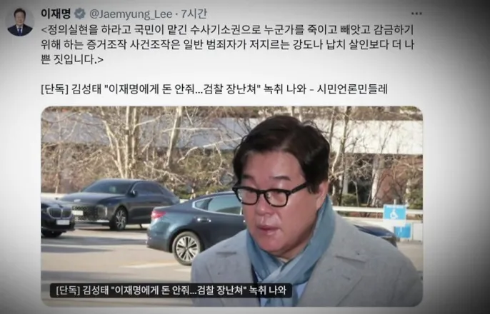 [앵커]더불어민주당정청래대표는사퇴도타이밍이있다면서,조희대대법원장의거취표명을거듭압박했습니다.범여권에서는사퇴를넘어탄핵추진움직임도있는데,민주당은일단은거리를두는모습입니다.임성재기자의보도입니다.[기자]필리핀을국빈방문중인이재명대통령이SNS에올린글입니다.김성태전쌍방울회장이'이재명에게돈을건넨사실이없다,검찰이장난쳤다'고말했다는시민언론'민들레'의기사를공유했습니다.누군가를죽이고,빼앗고,감금하기위해증거나사건을조작하는건강도나납치살인보다나쁜짓이라며,검찰을정면비판했습니다.민주당은이번녹취록으로정치검찰이획책한'사기극'의실체가드러났다고적극호응했고,조국혁신당조국대표도천인공노할일로,법왜곡죄가왜필요한지보여준다고거들었습니다.'대통령공소취소모임'을흡수한민주당국정조사추진위원회는[12일본회의접수,4월내마무리]라는구체적인로드맵을제시했습니다.[박성준/더불어민주당국정조사추진위부위원장:'부당거래'라는영화를더뛰어넘는장면들이등장하고있습니다.검사가회유·협박,조작기소한게그대로….]검찰을향한범여권의화살은조희대대법원장에게고스란히꽂혔습니다.정치검찰의조작기소를가려내지도,판단하지도못했다는게민주당주장입니다.[정청래/더불어민주당대표:모든만사가때가있습니다.사퇴도적절한타이밍이있습니다.거취를표명하시기바랍니다.]범여권강경파는'조희대탄핵공청회'까지열어이미탄핵소추안을마련해뒀다고으름장을놨는데,민주당은의원들개별의견일뿐,지도부차원에서논의하지않았다고선을그었습니다.'사법3법'처리를속수무책지켜보다'뒷북저지총력전'에나선국민의힘은노골적인사법부겁박을멈추라며거듭대통령의거부권행사를촉구했습니다.특히,대통령SNS는스스로방탄에목을매는거라면서,사법체계정당성을뒤흔드는중대한정치적행위이자비열한선동이라고지적했습니다.[박성훈/국민의힘수석대변인:이재명대통령은책임회피를넘어선위험한선동행위를멈추십시오.억울한누명을썼다면재판을재개해법정서….]국민의힘은대통령재의요구권행사를촉구하며청와대앞에서현장의원총회를계획하고있습니다.이대통령은거부권을쓸뜻이없는것으로전해져,역시나대답없는메아리가될가능성이커보입니다.YTN임성재입니다.촬영기자:이성모온승원영상편집:오훤슬기디자인:지경윤YTN임성재([email protected])※'당신의제보가뉴스가됩니다'[카카오톡]YTN검색해채널추가[전화]02-398-8585[메일][email protected][저작권자(c)YTN무단전재,재배포및AI데이터활용금지]Copyright©YTN.무단전재및재배포금지.