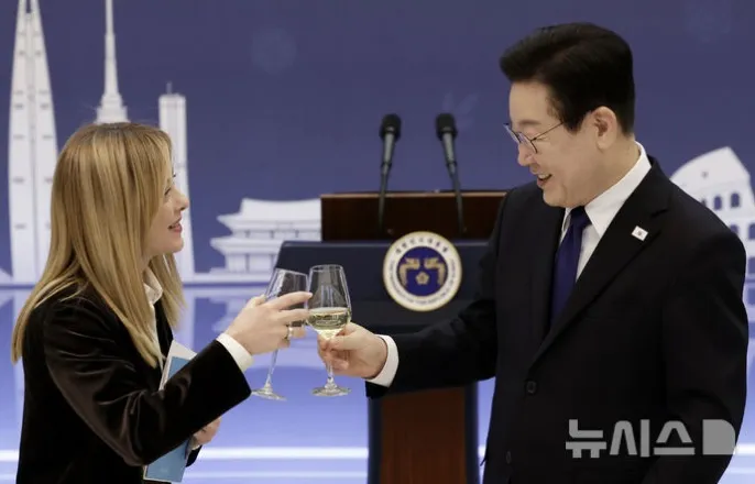 韓·伊정상회담…'2026-2030액션플랜'수립키로李"과학기술등협력확대"멜로니"정치대화강화"멜로니,李에올해중이탈리아국빈방문요청도[서울=뉴시스]최동준기자=이재명대통령과조르자멜로니이탈리아총리가19일청와대에서열린한-이탈리아공식오찬에서건배를하고있다[email protected][서울=뉴시스]조재완김지은김경록기자=이재명대통령과조르자멜로니이탈리아총리는19일정상회담을갖고첨단제조업과미래핵심기술분야에서의파트너십을강화하기로합의했다.양국은차기전략대화를조속히개최하고,'2026-2030년액션플랜'을마련하기로했다.양정상은이날오후청와대에서회담직후이같은내용을담은'대한민국과이탈리아공화국간공동언론성명'을발표했다.양정상은성명에서오늘날경제가직면한도전과제와첨단제조업및기술의중요성을재확인했다.양정상은지난해9월서울에서열린'한-이탈리아비즈니스포럼'의성과를평가하며,양국경제의강점과상호보완성을활용해제3국시장에서의교역과투자도증진해나가기로의견을모았다.구체적으로인공지능(AI),항공우주,반도체,핵심원자재등4대핵심분야에서산업협력을강화하고공공기관과민간기업간파트너십을육성하기로했다.특히양국은이번회담을계기로'반도체협력에관한양해각서(MOU)'를체결하고실질적인협력에나선다.이번MOU에는AI등첨단분야를포함한비즈니스협력및정보공유,반도체공급망강화협력,공공·민간부문네트워킹활성화등의내용이담겼다.이를통해양국은민간간반도체분야협력을지속적으로확대해나갈계획이다.또한국산업통상자원부와이탈리아기업·메이드인이탈리아부간산업협력양해각서와한국이의장직을수임중인'광물안보파트너십(MSP)'등의틀내에서유연하고신뢰할수있는핵심광물공급망구축을위해공동노력하기로했다.외교·안보분야에서의협력체계도구체화했다.양국은주요지역및글로벌현안논의를위한핵심플랫폼으로서'전략대화'를강화하기로하고차기회의를조속히개최하기로했다.아울러양국협력의주요목표를식별하기위한'2026-2030년액션플랜'을마련하기로했다.양정상은평화롭고번영하는인도-태평양지역을위해긴밀히협력하겠다는의지도재확인했다.과학기술분야에서는2007년체결된과학기술협력협정을토대로공동연구와인적교류를확대하자는데의견을모았다.양정상은물리학및양자과학,첨단소재및나노기술,환경과학및에너지전환,문화유산접목AI,첨단바이오,우주항공등미래지향적분야에서8건의공동연구가착수된점을평가했다.또대학및고등교육기관간협력을촉진하기위한구체적인협정과공동프로그램도추진하기로했다.문화및인적교류확대방안도논의됐다.양정상은'2024-2025한-이탈리아상호문화교류의해'를계기로영화,박물관,공연예술,건축,관광등분야에서새로운파트너십을추진하기로했다.이와함께'문화유산및경관보호MOU'도체결해양국의보전·보호정책을공유하고관련역량을제고하기로했다.시청각산업간협력을심화하겠다는공통된견해를공유했다.스포츠분야에서는2026년밀라노-코르티나담페초동계올림픽·패럴림픽을계기로협력을증진하기로했다.아울러'시민보호협력MOU'체결을통해재난관리및시민보호분야정보교환과전문가교류를실시하고,재해발생시지원절차를수립하는등국민안전보호를위한공조도강화하기로했다.한반도문제와관련해양정상은한반도의완전한비핵화와항구적평화정착을위한의지를재확인했다.G20(주요20개국)과G7(주요7개국)등다자무대에서의파트너십도강화하기로했다.멜로니총리는이대통령에게올해중이탈리아를국빈방문해달라는요청도재차했다.[서울=뉴시스]최동준기자=이재명대통령과조르자멜로니이탈리아총리가19일청와대에서한-이탈리아공동언론발표를하고있다[email protected]한편,양정상은이날확대정상회담모두발언을통해양국관계의미래비전을공유했다.이대통령은"과학강국으로서이탈리아의전통적인강점과기술강국인대한민국의핵심DNA가힘을모으면양국이큰시너지를창출할수있을것"이라며"과학기술분야와우주항공,방산등첨단산업분야에서도양국간의협력은계속늘어나고있고관계잠재력에는한계가없다고느껴질정도"라고말했다.이대통령은"무엇보다도사람과사람이자주만나는것만큼양국우호관계를단단하게만들동력은없다"며인적교류의중요성을강조했다.또"이탈리아는6·25전쟁당시유엔회원국이아니었는데도의료지원부대를파견해서대한민국을도와준참으로고마운나라"라고감사를표했다.이에멜로니총리는"양국은지리적으로굉장히멀지만같은가치를공유하는국가"라며"전통적가치를기반으로창의력이나혁신등새로운가치를추구한다는면에서도똑같은가치를공유한다"고화답했다.멜로니총리는"한국은교역뿐아니라소프트파워에서도굉장히강한국가로저희딸은K팝팬이기도하다"며문화적유대감을표했다.이어"평소이대통령의실용적인접근방식에대해굉장히긍정적으로생각해왔고존중한다"며"저의방한을계기로정치대화를제도적으로수립하면좋지않을까한다"고했다.정상회담에앞서대통령은이날오전청와대본관1층로비에서멜로니총리를직접영접했다.이대통령은멜로니총리가도착하자"환영한다"며악수를청했고