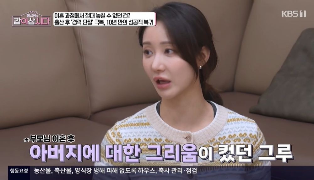 [TV리포트=남금주기자]배우한그루가이혼과정에관해털어놓았다.21일방송된KBS1'황신혜의같이삽시다'에서는황신혜,장윤정,정가은과게스트한그루가등장했다.이날한그루는쌍둥이가만5세때이혼했다고고백했다.한그루는"아이들은이혼사실을어떻게받아들였냐"는질문에"자연스럽게설명을계속해줬다"라고말문을열었다.한그루는"애들이자기도못보게된다는불안함이있을까봐설명해줬다.피가섞인가족은절대헤어질수없는거라고했다"라며"세상엔다양한가족의형태가있는데,너희는엄마,아빠와도잘노니까행복한거라고해줬다"라고밝혔다.부모님께는이혼을결정한후말씀드렸다고.한그루는"죄송스럽지만,다결정하고얘기했다"고고백했다.한그루는"애들아빠와이혼절차에서절대싸우고싶지않았다"라며"전엄마가아빠에대한원망이커서저희친아빠를자주못봤다.그게너무한이됐다.난아빠가너무좋은데"라고털어놓았다.한그루는"난그렇게안하는게애들한테해줄수있는최소한의배려인것같았다"라며"금전적인문제로다투게될것같았다.각자부모님은의견이다를거기때문에일부러말을안했다.저와애들아빠와다정리한후말씀드렸다"고밝혔다.한그루는부모님의반응에대해선"제가'엄마'라고했는데,'이혼하려고하니?'라고하시더라.그렇게생각했으면하라고얘기하셔서더놀랐다"며담담했던어머니의반응을전했다.이를들은장윤정은"그렇게담담하게받아주시면더죄송하다.내가큰불효를하는것같아서더마음이아프더라"며공감했다.아이들은친부와자주만나는편이라고.한그루는"이혼할때아무것도안바라고,아이들만자주만나주면된다고했다.일주일에몇번이고상관없으니아무때나만나달라고했다"라고밝혔다.한그루는쌍둥이남매의사진을공개하기도했다.한그루는"이혼하고처음엔돈이한푼도없었다.양육비받은걸로빠듯하게나가고,여윳돈이없었다.재산분할을안했다"라고솔직히말했다.이어한그루는"노력하면그래도도와주시는분들이생기더라.그래서이렇게해온것같다.복귀할때도예전에같이작품한감독님이불러주셔서복귀했다"라며도와준주변사람들에게고마운마음을전했다.남금주기자[email protected]/사진=KBS1'황신혜의같이삽시다'Copyright©TV리포트.무단전재및재배포금지