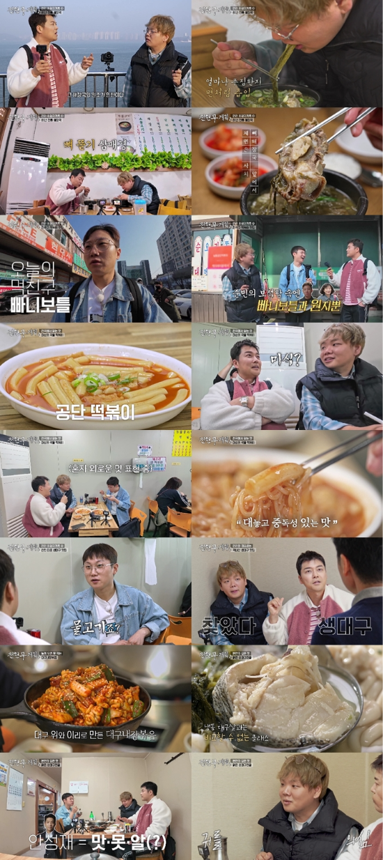 MBN·채널S‘전현무계획2’‘전현무계획2’빠니보틀이‘먹친구’로출격해,전현무-곽튜브와찐친케미를내뿜으며시청자들을사로잡았다.2일(금)방송된본격리얼길바닥먹큐멘터리‘전현무계획2’(MBN·채널S공동제작)27회에서는전현무-곽튜브(곽준빈)와‘한국여행유튜버1위’빠니보틀이43번째길바닥으로인천을다시찾아‘시청자계획’을펼쳤다.이들은‘전현무계획’SNS로온시청자들의DM(다이렉트메시지)를토대로81년전통의공구상가해장국밥맛집은물론,인천의‘전국구’떡볶이성지,43년노포에서드디어만난‘생대구탕’까지모두섭렵하는먹트립을보여줘안방극장에힐링과정보를대거안겨줬다.이날인천에뜬전현무는“첫끼는국밥!”이라며‘전현무계획’국룰을선포한뒤,시청자가‘강추’한공구상가해장국밥맛집으로곽튜브를이끌었다.이곳에서두사람은‘우거지해장국’을영접해푸짐한우거지를면처럼흡입하는가하면,큼직한뼈를손으로잡고뜯으며리얼먹방을펼쳤다.체면을잊게한해장국의‘고자극’맛에극락을경험한뒤,전현무는“다음코스는아침7시부터대기하는맛집”이라고예고했다.이에곽튜브는“저는‘먹친구’를불렀다.송중기,이제훈,에스파와어깨를나란히하는제친구~”라고소개해전현무의‘동공확장’을유발했다.같은시각,이날의‘먹친구’빠니보틀은무려61팀이대기중인‘인천떡볶이성지’에서섭외까지‘순삭’하며‘전현무계획’게스트의모범답안을보여줬다.직후,합류한전현무-곽튜브는빠니보틀과반갑게인사한뒤,대기한지약1시간만에드디어성지에입성했다.자리잡고앉은세사람은그유명한‘공단떡볶이’와‘쫄볶이’(쫄면+떡볶이)를주문했고,이내뜻밖의주황색비주얼을가진떡볶이가등장하자모두당황했다.맛을본전현무는“이거신기하네~”라며‘찐’반응을보였고,곽튜브는“식감이진짜좋다”며‘엄지척’했다.반면‘먹알못’빠니보틀은“여기단맛이있어?”,“왜밥냄새가나지?”라며이해못할평을연거푸날려폭소를자아냈다.이모습에전현무는“다음맛집은빠니보틀이좋아할지모르겠다”며생대구탕맛집을언급했다.이에빠니보틀은“대구가뭔지잘몰라서..물고기죠?”라며순도100%‘먹알못’질문을던졌고,전현무는“이런사람이‘전현무계획’에출연을했네..”라며‘현타’에빠져대환장파티를이뤘다.잠시후,세사람이생대구탕맛집에도착한가운데,전현무는자리에앉기가무섭게“시청자분들이재료가소진되기전에빨리시켜야한다고알려준메뉴가있다”며‘43년노포의비밀병기’인대구내장볶음부터주문했다.이윽고귀한대구위와이리를섞은대구내장볶음이나왔고,세사람은인천지역막걸리까지페어링하며박수가절로터지는먹방을펼쳤다.뒤이어‘생대구탕’이등장했고,전현무는“味친것같애.내가‘전현무계획’하면서생대구에한이맺혔는데!”라며감격했다.드디어‘전현무계획’최초로생대구탕을맛본전현무는“너무부드럽잖아”라며행복해했고,곽튜브는“여긴(방송에서)편집해야돼~”라며알려지는걸아까워했다.그런가하면곽튜브가대구내장볶음에밥을비벼먹으면서“김이랑참기름곁들이면꿀맛이겠다”고하자,빠니보틀은“이래서제가곽튜브를안성재셰프와동급으로본다”며미식가로우러러봤다.이에전현무는“안성재셰프는김같은것추가안하고순정으로먹을것”이라고설명했지만,빠니보틀은“안성재셰프님‘맛못알’이시네~”라며‘곽튜브교’신도같은망언을터뜨려현장을초토화시켰다.폭소와함께‘곽튜브소울메이트’빠니보틀과의먹방이마무리된가운데,인천의숨은로컬맛집발굴이이어지는‘보물찾기’급먹트립현장은9일(금)밤9시10분방송되는MBN·채널S공동제작예능‘전현무계획2’28회에서확인할수있다.[MBN스타박소진기자[email protected]]<CopyrightⓒMBN(www.mbn.co.kr)무단전재및재배포금지>Copyright©MBN.무단전재,재배포및AI학습이용금지.