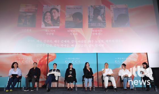 26일오후서울메가박스성수점에서'구찌임팩트어워드GUESTVISIT'행사가열렸다.이날모더레이터를맡은배우김신록과'그녀에게'이상철감독,배우김재화'대도시의사랑법'배우노상현,'되살아나는목소리'시네마달김명주팀장,'아침바다갈매기는'박이웅감독,'정순'정지혜감독,배우김금순이참석해자리를빛냈다.박세완엔터뉴스팀기자[email protected]'제61회백상예술대상'구찌임팩트어워드GUESTVISIT에서우리사회에소외된계층에대해조명하고보다나은미래에대한고민의시간을가졌다.'제61회백상예술대상'구찌임팩트어워드(GUCCIIMPACTAWARD)GUESTVISIT가26일서울성동구메가박스성수ATMOS관에서열렸다.이날행사엔'그녀에게'(이상철감독)'대도시의사랑법(이언희감독)''되살아나는목소리(박수남,박마의감독)''아침바다갈매기는(박이웅감독)''정순(정지혜감독)'등올해백상예술대상영화부문구찌임팩트어워드후보작다섯편의영화인들이참석했다.배우김금순·김재화·노상현,감독박이웅·이상철·정지혜,제작자정수진,시네마달김명주팀장등과3년연속모더레이터를맡은배우김신록이자리를빛냈다.26일오후서울메가박스성수점에서'구찌임팩트어워드GUESTVISIT'행사가열렸다.이날모더레이터를맡은배우김신록과'그녀에게'이상철감독,배우김재화'대도시의사랑법'배우노상현,'되살아나는목소리'시네마달김명주팀장,'아침바다갈매기는'박이웅감독,'정순'정지혜감독,배우김금순이참석해자리를빛냈다.박세완엔터뉴스팀기자[email protected]주말에도불구하고객석은구찌임팩트어워드후보작의주역들을보기위해찾은관객들로가득찼다.후보작소개영상뒤출연자와제작자들이무대에등장하자객석에서는커다란박수와함성이쏟아졌다.먼저참석자들은구찌임팩트어워드수상작에선정된소감을말했다.구찌임팩트어워드는저마다의시선에서사회문제를조명하고더나은미래를향한메시지를담은작품을조명하는상이다.올해는'희망을향한항해'라는주제로심사위원들의엄정한심사를통해부문후보를뽑았다.'그녀에게'출연자김재화는“콘텐트분야에종사하는한사람으로구찌에서이런뜻깊은취지의상을마련해서대한민국영화발전에함께힘을모은다는자체가특별한의미가있다고생각한다”며“후보작에선정됐다는얘기를듣고기뻤다”고이번행사에깊이공감했다.'정순'으로백상예술대상최고여자연기상후보에도오른배우김금순은“안믿겼다.'진짜냐'고되물었다”고벅찬소감을밝혔다.'대도시의사랑법'정수진제작자는“다른데있지않은의미있는상이다보니영광스럽다”고소감을전했다.26일오후서울메가박스성수점에서'구찌임팩트어워드GUESTVISIT'행사가열렸다.이날모더레이터를맡은배우김신록과'그녀에게'이상철감독,배우김재화'대도시의사랑법'배우노상현,'되살아나는목소리'시네마달김명주팀장,'아침바다갈매기는'박이웅감독,'정순'정지혜감독,배우김금순이참석해자리를빛냈다.박세완엔터뉴스팀기자[email protected]연속구찌임팩트어워드GUESTVISIT모더레이터를맡은김신록은차분하고노련한진행을펼쳤다.김신록은“올해는희망을향한항해라는주제아래우리사회에소외된계층을향한희망의메시지에주목한다는점이인상적이다.이런기회를통해우리의시선이더다양하고포용력있게확산하길바란다”고말했다.구찌임팩트어워드후보작들에대한소개가이어졌다.먼저'그녀에게'는류승연작가의에세이'사양합니다동네바보형'이라는말을원작으로언론인출신작가가발달장애아동의부모가되며겪은일화를담았다.영화를연출한이상철감독은“장애아를키우며겪게된상연(김재화)의좌절과분투,그리고삶의균형을찾아나가는10년의여정을담았다”고소개했다.돌봄노동을제공하는엄마를연기한김재화는“오롯이경험한사람만표현할수있는이야기라더와닿았고공감을얻었다고생각한다”며“배우로서도배운점이많았던작품”이라고덧붙였다.26일오후서울메가박스성수점에서'구찌임팩트어워드GUESTVISIT'행사가열렸다.이날모더레이터를맡은배우김신록과'그녀에게'이상철감독,배우김재화'대도시의사랑법'배우노상현,'되살아나는목소리'시네마달김명주팀장,'아침바다갈매기는'박이웅감독,'정순'정지혜감독,배우김금순이참석해자리를빛냈다.박세완엔터뉴스팀기자[email protected]일오후서울메가박스성수점에서'구찌임팩트어워드GUESTVISIT'행사가열렸다.이날모더레이터를맡은배우김신록과'그녀에게'이상철감독,배우김재화'대도시의사랑법'배우노상현,'되살아나는목소리'시네마달김명주팀장,'아침바다갈매기는'박이웅감독,'정순'정지혜감독,배우김금순이참석해자리를빛냈다.박세완엔터뉴스팀기자[email protected]'대도시의사랑법'정수진제작자는“세계3대문학상중하나인부커상과국제더블린문학상후보에오른박상영작가의동명베스트셀러를원작으로했다.그중단편'재희'를영화화한건데소설의기본줄거리를따라가면서도다양한에피소드를추가해'나다움'을찾아가는주인공들의성장스토리에더욱집중했다”며“20대젊은이들이겪는사랑과우정그리고사회적편견에대한문제의식을확장해서표현하는데특히성소수자혐오와데이트폭력등현대사회에서여전히존재하는다양한문제들을조명하고자했다