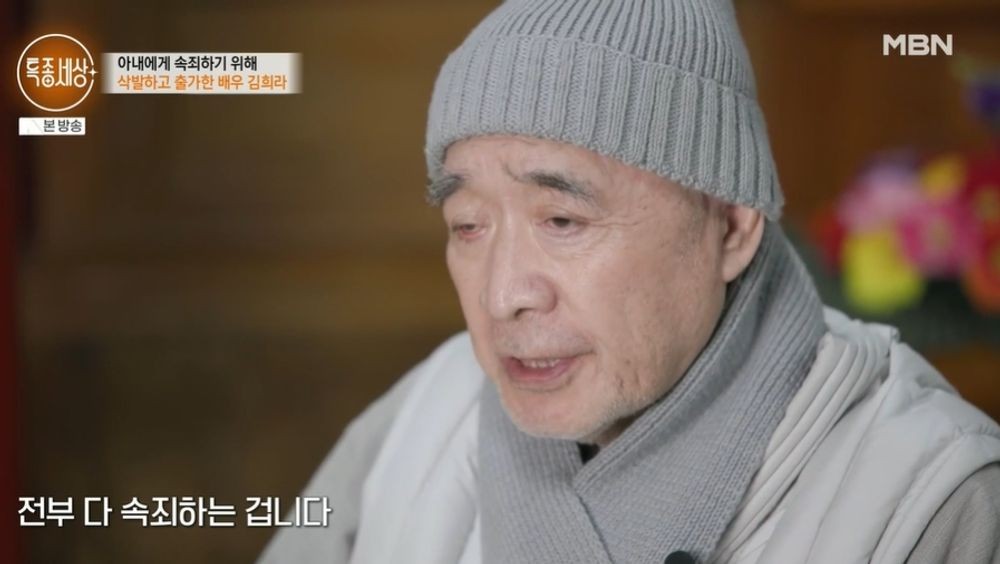 [TV리포트=남금주기자]배우김희라가78세의나이에아내김수연에게속죄하기위해스님이됐다.24일방송된MBN'특종세상'에서는배우김희라가56년간연예계생활을뒤로하고출가했다.이날2025서울국제불교박람회에김희라가나타났다.김희라는뉴진스님이"언제출가했냐"고묻자김희라는"3월23일에출가했다"고답했다.40년간500여편의영화에출연한김희라는"지금껏죄지은길을전부다속죄하는거다"라고밝혔다.삭발수계식을하고스님이된김희라는속세의이름을버리고법기스님으로살기로했다고.집에서도승복차림을한김희라는"난옷이없다.그래서이걸입는거다"라고했다.남편출가를위해옷정리를하는건아내김수연.아내는"점점짐을줄이고,집도줄이고.출가하려고계획이있었다.지금도입어선안된옷들을줄이려고하고있다"라며"이제출가했으니이런옷을입을일이많이없다.그래도혹시라도한두벌만남기려한다"고밝혔다.그러나김희라는"다정리해라.난어디갈데가없다"고단호하게말했다.그러다200만원넘는옷은빼놓으라고말하기도.아내가"치사하게주면다줘야지"라고하자김희라는"받는사람은로또된거지"라고했다.그런가운데56년지기배우한지일이등장했다.한지일은"네아내한테잘못한게많아서스님이된것같다"고했고,그렇단말에"네아내한테너무잘못한게많다.인정하냐"고밝혔다.김희라는"온인류한테나같은인간이되지말라고전부선전하고다닐거다"라고의지를드러내기도.한지일은다시한번"네과거는화려하면서도진짜속썩였던친구다.네아내한텐진짜못됐다"고말해사연을궁금케했다.아내는뇌경색후유증으로거동이불편한김희라의휠체어를끌고절로향했다.아내는"절에서같이지내는게가능하냐"는질문에"저도머리만길렀지스님하고똑같은수계를받아서법기스님보다제가선배"라고밝혔다.아내는몸이불편한남편의몫까지일손을보탰다.출가를권한건아내였다고.동료배우였던지금의아내를만나재혼한김희라는아내와한국과미국에서12년동안떨어져지냈고,상의없이큰사업을벌였다고.더큰잘못은외도였다.아내는"제가매일전화통화를했다.옆에누가있으면사랑한단말못하지않냐.제가사랑한다고하면'어.어'하더라"면서"이사람은한두건이아니라너무많았다.그땐죽을만큼힘들었다.귀가안들릴정도"라고힘들었던심경을털어놓았다.연이은사업실패와음주로뇌졸중으로쓰러진김희라.아내는미국에서한달음에달려와남편을간호했다고.아내는"여자,술,담배나쁜건다한사람이지않냐.지우개가있으면지우고싶어하는것같았다"고밝혔다.남금주기자[email protected]/사진=MBN'특종세상'Copyright©TV리포트.무단전재및재배포금지