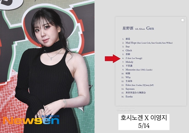 뉴스엔DB,이영지소셜미디어[뉴스엔박수인기자]가수이영지가일본유명가수호시노겐앨범의피처링아티스트로참여했다.호시노겐은4월23일공식소셜미디어계정을통해오는5월14일발매되는정규6집'Gen'의트랙리스트를공개했다.공개된트랙리스트에따르면6번트랙의곡'2'의피처링은이영지가함께했다.이영지는해당게시물을개인소셜미디어스토리에공유하며"호시노겐님짱.중학생때맨날노래방가서호시노겐님노래불렀었는데이렇게컬래버하게되네요.소원성취가끝이없다.덕계못(덕후는계를못탄다의준말)은다거짓말이야"라고기쁜마음을드러냈다.한편이영지는지난20일병원에서수액맞는사진을공개하며"나진심오랜만에너무아파가지고모든스케줄다캔슬하고며칠째쉬고있는데좀괜찮아지나싶으면다시아프고미치겠는중"이라며건강적신호를호소한바있다.뉴스엔박수인abc159@기사제보및보도자료[email protected]ⓒ뉴스엔.무단전재&재배포금지Copyright©뉴스엔.무단전재및재배포금지.
