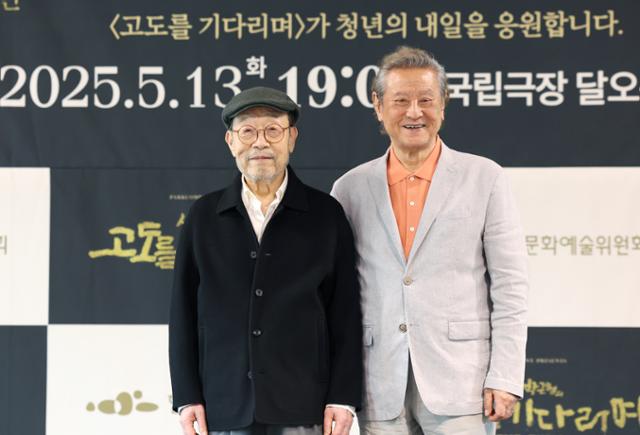 [N현장]배우신구가23일서울동숭동예술가의집에서진행된'신구,박근형의X한국문화예술위원회'기자간담회에참석해인사말을하고있다.신구(89)와박근형(85)의연극'고도를기다리며'는청년을위한특별기부공연으로기획됐다.티켓수익금은'자신만의고도'를기다리는청년연극인들을지원하기위한으로전액기부된다.2025.4.23/뉴스1ⓒNews1권현진기자(서울=뉴스1)김민지기자=배우신구와박근형이이번기부공연이연극계에보탬이되길바란다고했다.23일오전서울종로구동숭길예술가의집에서열린'신구,박근형의<고도를기다리며>X한국문화예술위원회(아르코)'(이하'고도를기다리며')기자간담회에서두배우는기부공연의배경을밝혔다.신구는"우리연극계가열악하기짝이없는데,특히젊은청년들이작업을하면서어려움을겪고있어(기부공연이)조금은보탬이되지않을까했다"라고말했다.박근형은"연극계도바탕이튼튼해뭔가이뤄낼수있지않겠나"라며"다행히우리를도와주는제작사와한국문화예술위원회가있어서참여하게됐다,여러프로그램에도적극적으로참여할계획"이라고전했다.정병국한국문화예술위원회위원장은"우리문화가전세계에서각광받고K-컬처로이름을날릴때보이지않는곳에서피나는노력을한분들이있다,그분들중에신구,박근형같은분이있어여기까지온것"이라며"연극은가장열악한환경속에있고이곳에서활동하는배우들은배가고프다,연극배우의50%가순수하게얻은연극수입이25만원이안되는게현실"이라고했다.이어"이런상황에서무대에서고싶어도설수없다는배우들의이야기가서글프고안타까웠다"라며"이번에신구,박근형이연극을통해얻은수익금으로후배들이제대로된교육을받을수있는계기를마련하고싶다고해기부공연을기획하게됐다"라고설명했다.이어"두선생님께서말씀하시기를'젊은배우들에대한교육이학교를중심으로이뤄지니연기법에미흡한점이많다'라며,기회가되면두선생님이나와서라도지도하고싶다고하셨다,그뜻을살려연극인들을위한교육프로그램을만들어야겠다싶었고아르코가전문가들과논의해커리큘럼을짜려고한다,선생님들의뜻이전달되게기금을운용할것"이라며"이번기부공연을통해모이는성금으로'연극내일기금'을조성하고더많은기금이모일수있도록캠페인을할생각"이라고덧붙였다.그러면서"두배우가참여해주셔서천군만마같다"라며"이뜻이일회성으로끝나지않도록노력할것"이라고했다.한편'고도를기다리며'는노벨문학상수상작가사무엘베케트의대표작으로,실체가없는'고도'를기다리는두방랑자의모습을통해인간존재의부조리성을탐구한작품이다.에스트라공역의신구,블라디미르역을맡은박근형은각인물을단순한배역을넘어현대사회를살아가는사람처럼섬세하게그려낸다.이번공연은파크컴퍼니제작으로지난2023년12월서울국립극장에서첫선을보인후지난해전국21개도시투어에서102회전석매진을기록했다.신구,박근형이함께하는'고도를기다리며'는이번공연을끝으로막을내린다.'고도를기다리며'파이널서울공연은오는5월9일부터25일까지서울국립극장달오름극장에서막을올린다[email protected]©뉴스1.Allrightsreserved.무단전재및재배포,AI학습이용금지.