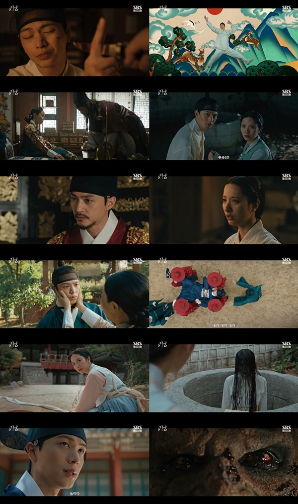 귀궁/사진=SBS제공[스포츠투데이정예원기자]'귀궁'육성재와김지연이본격적인퇴마판타지의막을올렸다.19일방송된SBS금토드라마'귀궁'2화에서는천년만에처음으로인간의몸에살게된이무기강철이(육성재)의인간적응기가펼쳐지는가하면,여리가궐안에서죽은윤갑(육성재)영혼의목소리를듣고그의넋을찾기위해고군분투하는모습이펼쳐졌다.이날방송은닐슨코리아기준최고시청률10.3%,수도권8.4%,전국8.3%로2회연속동시간대시청률1위를기록했다.먼저윤갑의몸에빙의된강철이와여리의낭떠러지추락사건이후,두사람은궁에서정신을되찾았다.여리는강철이가윤갑을해쳤다고생각했지만,윤갑이칼에찔려내상을입었다는사실을알고혼란에빠졌다.반면무서운회복력으로기력을되찾은강철이는난생처음느끼는인간의오감에푹빠졌다.미음한숟갈을맛본그는미각의황홀함에취해"인간의오감이란,그혓바닥이란,이얼마나황홀한것이란말인가"라고외치며궐한복판에서게걸스럽게미음을들이켰다.이때팔척귀의기이한울음소리가강철이의귀를파고들었다.그는여리가팔척귀의표적이될것을우려해서둘러그를데리고궐밖으로빠져나가려했다.하지만같은시각여리는자신을부르는윤갑혼령의목소리에홀려우물가로향했고,우물속에도사리고있던섬뜩한수살귀옥임(송수이)에게습격을당했다.옥임이윤갑혼령의목소리를흉내내여리를꾀어냈던것이었다.이때여리의위기를감지한강철이는부상당한몸을이끌고지체없이우물로뛰어들었고,수살귀를제압해여리의목숨을구해냈다.하지만강철이의행동이오로지승천을향한욕망때문이라여긴여리는자신을걱정하는강철이를외면한채,궐안을떠돌고있을윤갑의혼령을되찾을궁리만했다.그러던중여리는왕의애체(안경)를만들어달라고했던윤갑의말과는달리,왕이정(김지훈)에게는새애체가필요치않다는사실을알고의아해했다.뿐만아니라이정이아끼는애체의알은일반적인유리가아닌경귀석(귀신을쫓는돌)인것으로드러났다.한편강철이는어떤방법을써도윤갑의몸에서빠져나갈수없었고,이어진기행들로인해궐내는삽시간에'윤검서관실성설'로술렁이기시작했다.급기야나인들까지"윤갑나리가그렇게개차반이래?""기억소실이아니라그냥실성하신거아닌가?"라고수군거릴지경에이르자,여리는윤갑의얼굴을하고망나니짓을일삼는강철이의행동에격분했다.여리는강철이의면전에대고"내게가장소중한얼굴인데,그안엔가장증오하는네가자리잡고있어.이건너무끔찍한악몽이다"라며쏘아붙였다.극말미에는두사람에게위협이엄습했다.여리는수살귀옥임이윤갑혼령의행방을알것이라고여겨기도를통해그를불러냈다.옥임은여리에게"윤갑의영혼이이미팔척귀에게먹혔다"면서그의영혼을만나면죽음을면치못할것이라는경고를했다.그순간,궐안에서수상한기운을느낀강철이가"놈이다.팔척귀"라며바짝긴장했다.또한같은시각,광증에시달리던원자이광(박재준)이갑작스러운발작을일으키고,원자의얼굴위로핏빛으로물든팔척귀의얼굴이떠오르며궁궐을집어삼킨흉흉한사건의중심이팔척귀임이드러났다.'귀궁'은매주금요일,토요일밤9시50분방송된다.[스포츠투데이정예원기자[email protected]]Copyright©스포츠투데이.무단전재및재배포금지.