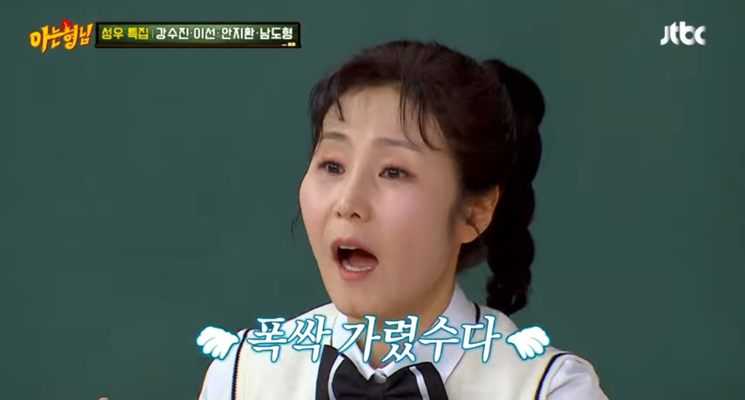 성우이선이‘폭싹속았수다’에출연했다고밝혔다.iMBC연예뉴스사진19일방송된JTBC예능프로그램‘아는형님’에서는대한민국대표성우강수진,이선,안지환,남도형이게스트로출연해화려한입담을뽐냈다.이날이선은성우출신배우로한석규,나문희,김영옥이있다고밝혔다.이선역시15년동안꾸준히연기활동을하고있다는것.iMBC연예뉴스사진iMBC연예뉴스사진민경훈이최근넷플릭스화제작‘폭싹속았수다’를언급하자,이선이“사실거의마지막에나온다.산부인과에서아이유의아이를받는산부인과의사였다.캡이랑마스크쓰니까못알아보더라”라며출연사실을밝혔다.이어“단역이지만출연했던것만으로영광이다.드라마가잘돼서기쁘다”라며뿌듯함을드러냈다.극중자료화면으로등장했던강호동은“우리종방연에서만나자”라며너스레를떨었다.iMBC연예뉴스사진iMBC연예뉴스사진한편,‘아는형님’은매주토요일오후8시50분에방송된다.iMBC연예김혜영|사진출처JTBCCopyright©MBC연예.무단전재및재배포,AI학습금지.