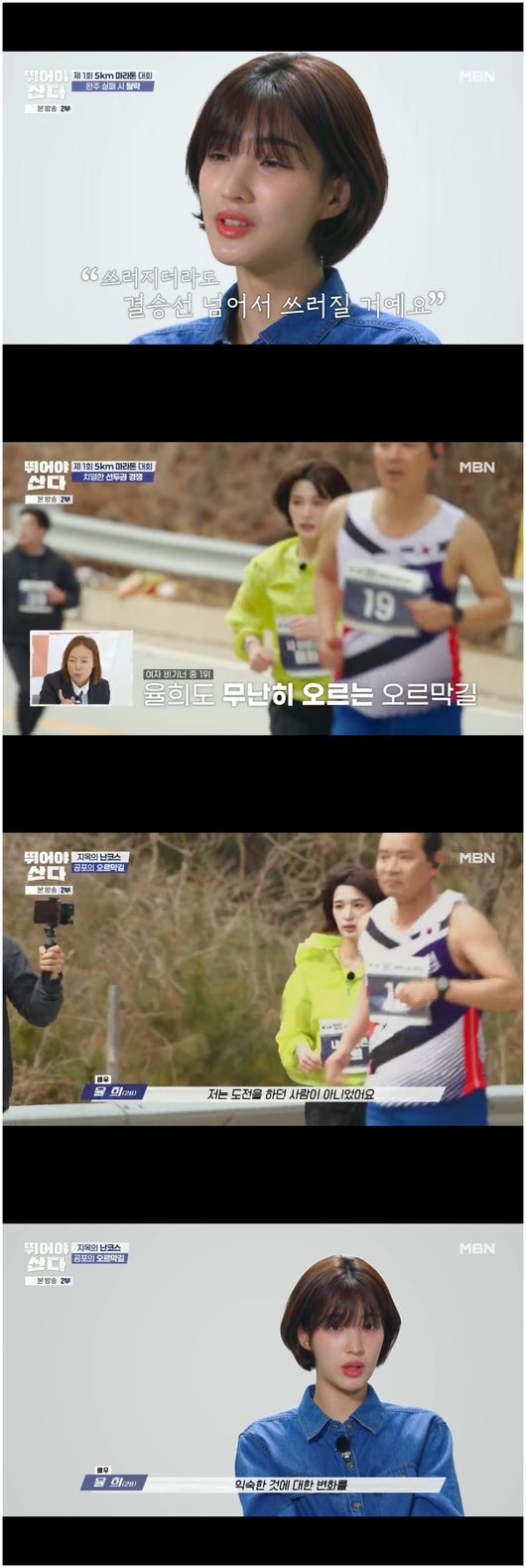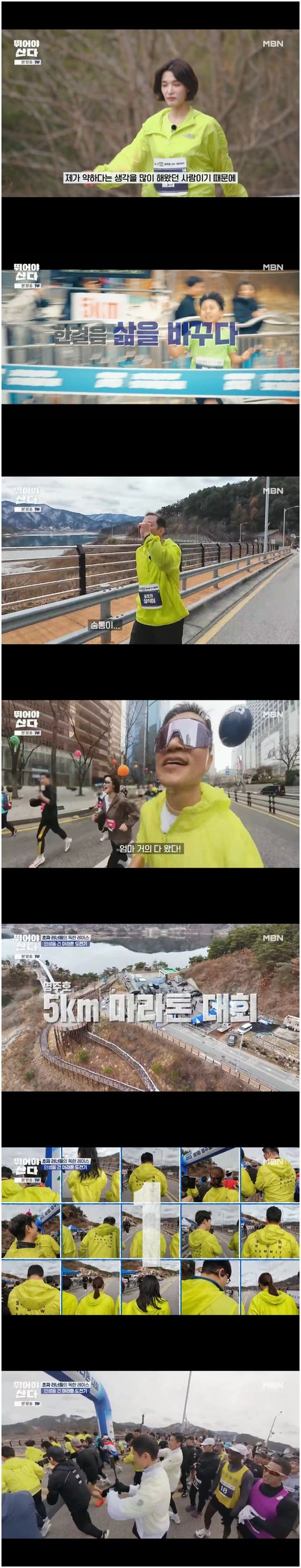 [OSEN=오세진기자]‘뛰어야산다’배우율희가새로운도전에나섰다.19일첫방송한MBN예능‘뛰어야산다’에서는뛰어야만사는,그래야살수있는16명의도전자들이등장했다.이들은저마다의사연을갖고등장해시선을끌었다.허약함의대가로알려진가수슬리피는“더이상약골아빠로살고싶지않다.아이가9~10kg정도됐는데들때마다힘들다.아이를들다가디스크가악화되고,두달있으면둘째가태어나는데,우리가족행복을위해서달려야한다”라며아빠로서의다짐을다졌다.또다른아빠이자양신양준혁은“제키워드는‘둘째가즈아’다.아내랑결혼할때만해도정자능력이있는데,결혼하고70%로떨어졌다.그래서건강을회복한다음에둘째를가지려고한다”라면서“와이프가야구팬이다.와이프랑결혼할때약속한게있다.아들을낳으면아들의사랑상관없이무조건야구를시킨다”라며모든계획이있다고밝혔다.반면엄마인배윤정은아들에대한미안함과사랑으로점철된마음으로나타났다.배윤정은“아이를사랑을마냥못해준시기가있다.산후우울증을심하게겪었다.노산에다가,왜아이를낳아서내인생이이렇게됐을까,이런생각도했다”라면서“그시기를다시한번되돌릴수있다면,너무많은사랑을주고싶다.아들이컸을때엄마가이정도로나를사랑했구나,느낄수있도록하고자달리려고한다”라며도전의지를다졌다.이들을위한단장과부단장으로션과이영표가등장했다.션은자타공인유명한마라토너였다.그리고2002년월드컵을비롯해숱한국가대표를지낸이영표는여전한몸매를자랑하고있어그의운동량을짐작하게했다.션은“저희의목적은마라톤풀코스가최종목적이다”라고말해모두를깜짝놀라게만들었다.이영표는“저희가계획한대로,훈련시킨대로따라만오히면3개월만에하프마라톤,6개월만에풀코스가가능하다”라며확언했다.이에대한확인을위해'5km대회를35분안에뛰지못하면탈락'이라는첫번째미션이주어졌다.러닝을취미로하기는커녕비기너에불과한이들은5km도버거웠다.그러나도전의식은이들을달리게했다.특히율희의활약이빛났다.자신의이혼소송법률대리인양소영변호사와도만난율희는"우리재판가야하는데"라는말에도"어떻게이렇게모였냐"라며해사하게웃을뿐이었다.율희는“모르는분도계실거다.결혼,출산,이혼을겪으면서작년에너무힘들었다.‘뛰어야산다’라는프로그램을통해서한계를넘고싶다”라면서“저는도전을하던사람이아니었다.도전을두려워하고,익숙하던걸하던사람이었다.진짜제한계를마주하고제한계를뛰어넘고싶었다”라며여자1위를지키는모습을보였다.아울러율희는“이제서야저를찾아가고있다고생각했다”라며“저는저에대한루머는괜찮다.그런데아이들에대한말이힘들다.아이들을사랑해주는엄마아빠는여전히있다”라면서아이들을향한사랑도전했다./[email protected][사진]MBN예능‘뛰어야산다’Copyright©OSEN.무단전재및재배포금지.