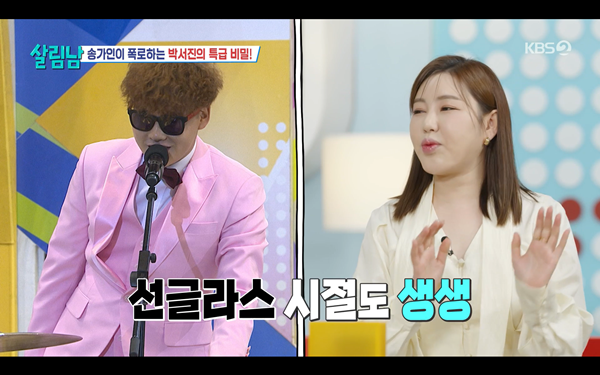 사진=KBS2TV'살림하는남자들'[스포츠한국신영선기자]가수송가인이박서진과의인연을회상했다.19일방송된KBS2TV예능프로그램'살림하는남자들'(이하'살림남')에는송가인이특별출연해무대를꾸몄다.이날송가인은'아사달'라이브무대로패널들의박수갈채를받았다.무대후토크에서송가인은박서진과의첫만남을떠올리며"무명시절부터많이봤다.선글라스를끼고다닐때부터였는데,어느날선글라스를벗고노래를하는모습을봤는데너무잘하더라"며"그때'저사람은누구지?'하고다시한번봤던기억이있다"고말했다.사진=KBS2TV'살림하는남자들'이어그는"저도트로트를하기전,판소리를할때는자기소개도제대로못하고멘트만하고내려오곤했다"며그런면에서박서진과성향이비슷한것같다고전했다.또한송가인은"지금도축가같은곳에가면과민성대장증후군이온다"며여전한무대긴장을고백해공감을자아냈다.스포츠한국신영선기자[email protected]©스포츠한국.무단전재및재배포금지.