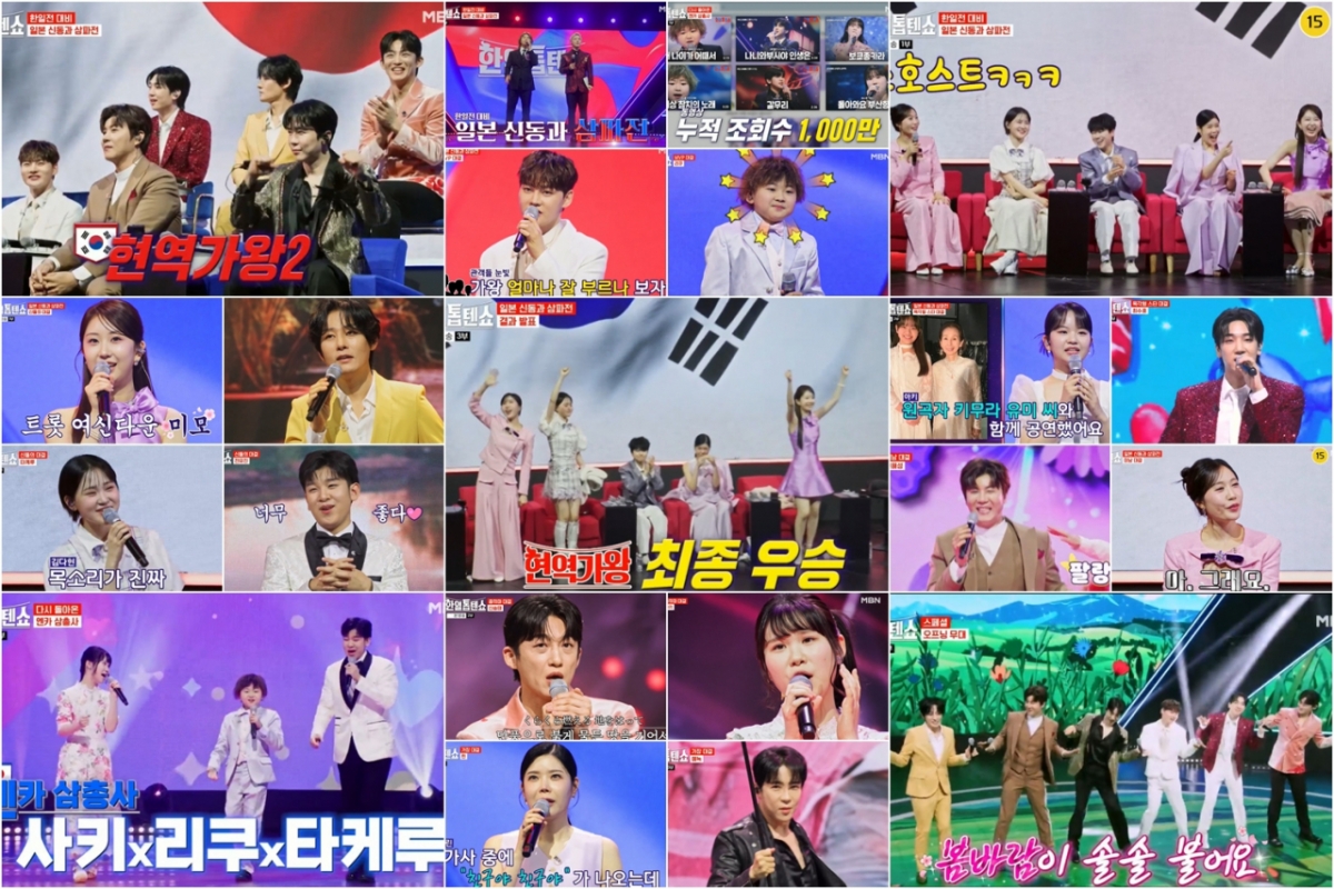 [스타뉴스|김수진기자]'한일톱텐쇼',연륜·노련함'현역가왕1'최종우승..火예능전채널1위MBN'한일톱텐쇼'에서진행된'2025한일가왕전'대비특별훈련'일본신동과의삼파전'특집에서연륜과노련함을지닌'현역가왕1'이최종우승을차지했다.지난8일(화)오후9시50분에방송된MBN'한일톱텐쇼'44회는분당최고시청률7.3%,전국시청률6.5%(닐슨코리아기준)를기록,지상파-종편-케이블채널에서방송된화요일예능프로그램중전채널시청률1위를수성하는쾌거를달성했다.이날방송에서는'현역가왕2'와'현역가왕1',그리고엔카신동삼총사가나선'일본신동팀'이쟁쟁한삼파전을펼치며'2025한일가왕전'에대한기대감을높였다.먼저박서진-진해성-에녹-신승태-최수호-강문경등'현역가왕2'TOP7이'제비처럼'을함께부르며향긋한봄내음의오프닝을선사했다.이어"아주혹독한한일전대비특훈에들어가겠다"라는MC대성의선전포고와동시에일본엔카신동삼총사아키야마사키-니시야마리쿠-쿠도타케루가한국어로'또만났네요'를부르며등장해일본신동의진가를발휘했다.일본신동삼인방은유튜브누적조회수가무려1000만에육박한다며인기를자랑했고,타케루는"이방송에먼저나온선배이기때문에그힘을보여주겠다"라는출사표로팽팽한긴장감을자아냈다.첫번째로자칭타칭신들이출전한'신들의대결'에서는전유진,강문경,타케루가나섰다.전유진은"현역가왕1대가왕으로트롯가문의전통을수호하는트롯여신"이라며"미모가필살기다"라고덧붙여강문경을비롯해모두의아우성을일으켰다.강문경은"저는그분이필살기"라며뽕신으로변신케하는그분을언급해웃음을일으켰다.강문경은'남자는말합니다'를호소력있게선보였고,타케루는'종카라온나부시'를불러김다현으로부터"목소리가진짜매력적"이라는극찬을받았다.전유진은'채석강'을음색여신다운깊어진음색으로표현,첫승리를따냈다.'육각형스타'대결에는최수호,별사랑,아즈마아키가맞붙었다.얼굴,키,판소리,트롯등모든것이다된다는최수호는'귀여운여인'으로매력적인퍼포먼스를완성했다.춤,노래,예능감까지다갖춘올라운더별사랑은'왔다가그냥갑니다'로처연한감정을폭발시켰다.'한일톱텐쇼'출연이후일본레전드가수키무라유미와도함께무대를했다는아키는'섬마을선생님'을한국어로열창해'현역가왕1'멤버들로부터"자랑스럽다우리아키"라는극찬을받으며1승을얻었다.각팀의미남들이출전하는'미남대결'에서는'현역가왕1'자타공인미남미녀1등인마이진,'일본신동팀'리쿠와타케루,'현역가왕2'진해성이등판했다.마이진은'소나기'를부르며작은우산을리쿠에게전달하는퍼포먼스로,리쿠와타케루는'인생외길'을불러엔카의깊이와정수를드러냈다.몸,눈,코,외모가다큰데아주작은입술이매력이라는진해성은"오늘춤춥니다"라는야심찬출사표를던진후'벌나비꽃나비'를어설픈율동같은댄스로소화해전유진마저깜짝놀라게만들며1승을거머쥐었다.'중요한건꺾는마음'이라는의미의'중.꺾.마'대결에는꺾기의장인신승태,사키,전유진과별사랑이출격했다.전유진과사키가견제1순위로꼽은막강한실력의신승태는"환영의의미로엔카를준비했다"라면서'아마기고에'를택해모두를압도하며환호를일으켰다.사키는'진정인가요'를표정부터180도변하는감성으로표현해현장을사로잡았다.첫듀엣이라는말로모두를놀라게한전유진과별사랑은'찐사랑'이라는명칭에어울리는'잡지마'로어깨를절로들썩이게만드는흥을폭발시켰다.하지만신승태가1승을챙겼다.'한일전을앞둔가왕'을위해준비한'MVP대결'에는'한일가왕전'MVP김다현,'한일신동가왕전'MVP니시야마리쿠,'2대현역가왕'박서진이격돌했다.박서진은"'얼마나노래잘하나보자'라고보실것같아서마음가짐을더신경써서하고있다"라며2대가왕의묵직한무게감을내비쳤다.그리고박서진과리쿠는꼬불꼬불파마한헤어스타일이똑같은평행이론사진을공개,웃음을안겼다.선공에나선김다현은'영'으로상큼함의절정을찍었다.리쿠는'날봐,귀순'으로특유의팔꿈치박수부터귀여운한국어,기상천외배웨이브까지다양한매력을발산,모두에게하트세례를받았다.박서진은'바보같지만'으로눈빛,표정,목소리에가왕의품격과진정성을녹여냈지만,승리는김다현에게돌아갔다.마지막으로각가문의첫째이자가장들인린,아즈마아키,에녹의빅매치가성사됐다.각가문을자랑해달라는요청에린은"동고동락한시간이길어서팀워크가대단하다"라고,에녹은"2025년기운은'현역가왕2'으로넘어왔다"라고,아키는"나이가깡패다"라고자부심을드러냈다.아키는'사랑은생명의꽃'을완벽한한국어발음으로소화,신승태로부터"강가에작약꽃이펼쳐진느낌"이라는칭찬을받았다.에녹은한일전각오를담았다며'당당하게'를택해한편의뮤지컬같은무대로단단한결의를표현했다.린은"요즘겪고있는모든일들에대해위로를많이해준곡"이라며'인생은미완성'을짙은감수성으로불렀고'친구야친구야'라는가사에서눈물을쏟아내먹먹함을자아냈다.린은"어딘가에마음이전달됐으면좋겠어요"라고절절한진심을전하며승리를얻었다.린의승점으로'현역가왕1'이최종우승을차지하면서,'한일톱텐쇼'한정판우승컵을받고감격을표했다.한편'한일톱텐쇼'는매주화요일오후9시50분에