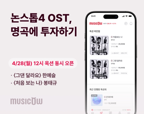 (엑스포츠뉴스이정범기자)뮤직카우가'논스톱4'OST두곡을음악증권옥션으로공개한다.최근음악투자플랫폼뮤직카우는2000년대방송된인기시트콤'논스톱4'의OST대표곡들을음악증권옥션으로예고했다.뮤직카우는4월28일한예슬'그댄달라요'와봉태규'처음보는나'의저작인접권을기초자산으로한음악증권옥션을오픈한다.한예슬'그댄달라요'는국내스트리밍플랫폼멜론에서누적감상수2,100만회를기록했다.이곡은다양한아티스트를통해꾸준히리메이크되며21년간가치를입증했다.또한,2021년부터2024년까지연평균15.8%의저작권료상승률을보였다.봉태규'처음보는나'는최근4년간연간저작권료가상승세를보였으며,2023년대비2024년월평균저작권료가상승해연간저작권료가30%이상증가했다.옥션은4월28일12시부터5월21일21시까지진행된다.'그댄달라요'는시작가55,000원에총5,000주,'처음보는나'는시작가25,000원에총2,500주를모집한다.공시기준과거1년저작권료수익률(세전)은각각10.1%,10.2%다.옥션은단일최고가응찰자부터순차적으로낙찰자를결정하며,모든낙찰자에게가장낮은낙찰가격이적용된다.다만모집수량이상한가에도달하면조기종료될수있다.뮤직카우는이번옥션에앞서4월4일황치열'내눈물이하는말'옥션을선보였으며,4월16일정준일'너에게'의음악증권옥션도오픈할예정이다.옥션관련상세정보는뮤직카우공식앱및홈페이지를통해확인할수있다.한편,뮤직카우는세계최초의음악수익증권플랫폼이다.아티스트에게는창작자금마련의기회를,투자자에게는새로운수익경험을제공한다.뮤직카우플랫폼에서는음악수익증권이발행및거래된다.과거수익실적은미래수익을보장하지않으며,해당금융상품은가격변동에따라원금손실(0~100%)이발생할수있다.손실은투자자에게귀속되며,투자전상품설명서및약관을반드시읽어야한다.사진=뮤직카우이정범기자[email protected]©엑스포츠뉴스.무단전재및재배포금지.