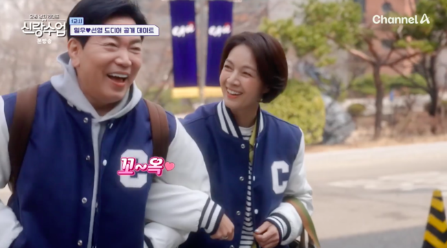 [OSEN=박하영기자]‘신랑수업’김일우가박선영과캠퍼스커플로변신했다.2일방송된채널A‘요즘남자라이프-신랑수업’(이하‘신랑수업’)에서는김일우가박선영을자신의모교인중앙대캠퍼스로초대하는모습이그려졌다.이날화이트바지로맞춰입고거리를걷던두사람은어딘가로향했다.바로김일우의모교중앙대였다.김일우는“선영이전에로망이사람많은데서데이트를해보고싶었다고해서”라며“여기는저의모교.중앙대학교에왔다.요즘또개강시즌이고학생들도많고여대를나온선영한테는CC의기분도느끼게해줄겸저의모교중앙대를찾아왔다”라고밝혔다.이어“선영이라같이다니면괜히내어깨가으쓱하다”라고답했다.그러면서그는“데이트할때마다좋아하는모습보니까즐겁게해주고싶다”라며박선영을애정을드러냈다.이후두사람은굿즈샵을방문해남색점퍼로맞춰입었다.커플룩을맞춰입은김일우는“우리CC야”라고했고,박선영은“와나여대라CC해보고싶었는데못해봤다.오빠해봤지?”라고기습질문을던졌다.당황한김일우는“있었다”라고솔직하게답해탄식을자아냈다.갑자기싸해진분위기에김일우는“혹시모르니까이것도하나가져가봐”라며주니어점퍼를고르며분위기전환을시도해웃음을자아냈다.그렇게캠퍼스를거닐던두사람.김일우는과거연애사를고백하며“나도뭐CC는아닌데우리는티안나게다녔던것같다.굳이학교에서만나는데팔짱을끼고다니나”라고말했다.그순간박선영은“우리CC다”라며김일우에게기습팔짱을꼈고,김일우는미소를숨기지못했다./mint1023/@osen.co.kr[사진]‘요즘남자라이프-신랑수업’방송화면캡처Copyright©OSEN.무단전재및재배포금지.