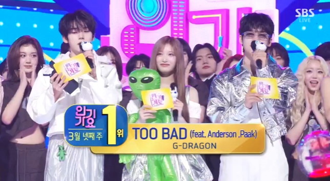 [OSEN=김나연기자]지드래곤이'인기가요'출연없이트리플크라운을달성했다.23일방송된SBS'인기가요'에서는지드래곤의'TOOBAD'가3월셋째주1위를차지했다.이로써지드래곤은3주연속'인기가요'1위에이름을올리며'트리플크라운'의영광을안았다.이날'인기가요'에는CandyShop(캔디샵)의'TIPTOE'무대가공개됐다.'TIPTOE'는씨스타'MABOY'INTRO를샘플링해조심스럽지만멈출수없는설렘을담아낸곡이다.캔디숍은중독성있는반복적인후크를통해두근거리는감정을한층끌어올리며상대에게다가가고싶은마음과망설임이교차하는순간을섬세하게풀어냈다.다.신예밴드'DragonPony(드래곤포니)'의데뷔무대도이어졌다.드래곤포니의데뷔곡'NotOut'은야구용어에서비롯된표현으로,꿈을향해끊임없이도전하는현대청춘들의모습을낫아웃상황에비유한곡이다.드래곤포니는"결과가어떻게되든게속시도하고부딪히자는메시지를담았다"고설명했다.드래곤포니는강렬한락사운드로불안하고막막한현실이지만,도전하는삶그자체로도의미있다는격려를전하며뜨거운에너지를발산했다.FANTASYBOYS(판타지보이즈)는'Undeniable'로컴백무대를꾸몄다.'Undeniable'은목표를향해끊임없이나아가는강한의지를탄탄한보컬로담아낸곡이다.판타지보이즈는'Undeniable'을통해도전으로배우고,성장하며더욱단단해진모습을담았다.판타지보이즈는중독성강한사운드와직설적인가사,강렬한보컬로무대를꾸미며절제된섹시미를선사했다.'OnlyOne'으로컴백한더윈드(TheWind)의무대도이어졌다.'OnlyOne'은강렬한기타리프와감성적인스트링이조화를이루며,청량감넘치는보컬이돋보이는팝펑크곡이다.더윈드는'OnlyOne'을통해그동안선보인청량감과는조금다른,성숙한매력을담아내며또한번의성장과여운을남겼다.신수현은신곡'어이없이난쉽게도'를통해그가그동안쌓아온감정과내면의변화를진지하게표현했다.'어이없이난쉽게도'는보컬의감정표현과파워풀한사운드가잘어우러지는곡.신수현은사랑의복잡한감정을담은가사와그안에담긴애틋함과갈등을감성가득한보컬로섬세하게풀어내며감동을안겼다.NMIXX(엔믹스)는수록곡'HighHorse'와타이틀곡'KNOWABOUTME'두무대로몽황적매력을뽐냈다.'HighHorse'는나를하염없이작고낮게만드는시선이가득한현실에서벗어나고자하는마음을담은곡으로,진취적인가사와시네마틱하고웅장한후렴이특징적이다.'KNOWABOUTME'는트랩기반의드럼과과감한신스사운드가곡의차분하면서도강한느낌을이끌어간다.엔믹스는"함께모험을하면서몰랐던너와나를조금씩알아가는내용을담았다"고소개했다.엔믹스는멈출수없는자신감을담은신곡을통해육각형걸그룹의면모를발산했다.한층더성숙한음악적색채로돌아온STAYC(스테이씨)는수록곡'PIPEDOWN'과타이틀곡'BEBE'로당돌한매력을전했다.스테이씨는'BEBE'에대해"남들의편견을벗어나진짜나의모습을드러내겠다는스테이씨의파격적인변신이담긴곡"이라고소개했다.'BEBE'는FunkyHouse장르의댄서블한리듬과중독성있는드랍이포인트인곡으로,스테이씨만의독특한보컬톤이곡에색다른매력을더한다.스테이씨는그동안보여준이미지를벗어던지고색다른변신을시도,솔직하고과감한진짜모습으로강렬한인상을남겼다.1년6개월만에컴백한에일리(Ailee)는감각적인비트와정교해진사운드가돋보이는'MMI'로음악적변화를시도했다.'MMI'는마이애미비트기반의HipHopR&B장르의곡으로스스로에게집중한이야기를유쾌하고위트있게담았다.에일리는시원시원한보컬로청량감을극대화함과동시에특유의자신감넘치고생동감있는에너지가담긴퍼포먼스로'아티스트에일리'의스펙트럼확장을보여줬다.한편이날'인기가요'에는NouerA(누에라),더윈드(TheWind),DragonPony(드래곤포니),LESSERAFIM,SAYMYNAME,STAYC,슬기(SEULGI),신수현,에일리(Ailee),NMIXX,예지(ITZY),GENBLUE,CandyShop,TREASURE,FANTASYBOYS등이출연했다./[email protected][사진]SBSCopyright©OSEN.무단전재및재배포금지.