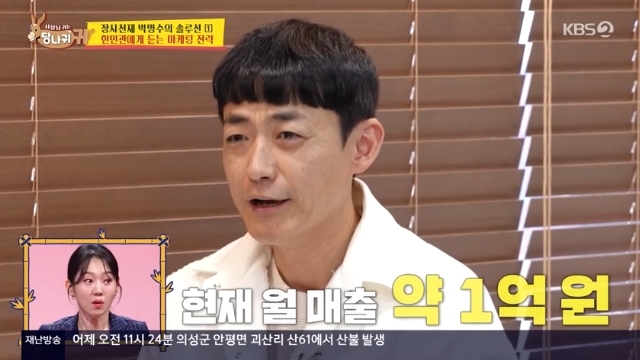 KBS2TV‘사장님귀는당나귀귀’캡처KBS2TV‘사장님귀는당나귀귀’캡처[뉴스엔서유나기자]개그맨겸카레이서한민관이근황을전했다.3월23일방송된KBS2TV예능'사장님귀는당나귀귀'(이하'사당귀')298회에서는김병현이벤치마킹을위해한민관의버거집에방문했다.이날신촌에서버거집을운영중인근황을전한한민관은하루매출을묻자"월매출이한1억가까이된다.하루에최소150,250건나간다"고밝혀놀라움을자아냈다.그는마케팅성공비결을궁금해하는김병현에게"대한민국에서(햄버거)프랜차이즈를하려면이미자리잡고있는1,2,3위가있어서이들과다른게있어야한다"며'가격경쟁에서밀리지말자'는생각으로1년365일원플러스원전략을선보이고있다고밝혔다.햄버거한개를주문하면한개를더주고있다는것.그는돈이남긴하냐는말에매장오픈전에미리준비한게있다며"햄버거패티를만드는설비를갖고있다.결국자재비에서많이줄여야한다"고팁을공융했다.한편2006년KBS21기공채개그맨출신인한민관은2012년7살연하와결혼해슬하에두아들을뒀다.2008년카레이서로데뷔해볼가스모터스포츠소속으로활동중이다.지난해스캠코인연구설에휩싸이자위너즈코인과는"어떠한관계가없다.있을리가없지만있다면그냥죽겠다"고입장을밝히며논란에선을그었다.한민관은최근개인채널을통해새로이사한김포의아파트를공개해화제를모았다.뉴스엔서유나stranger77@기사제보및보도자료[email protected]ⓒ뉴스엔.무단전재&재배포금지Copyright©뉴스엔.무단전재및재배포금지.