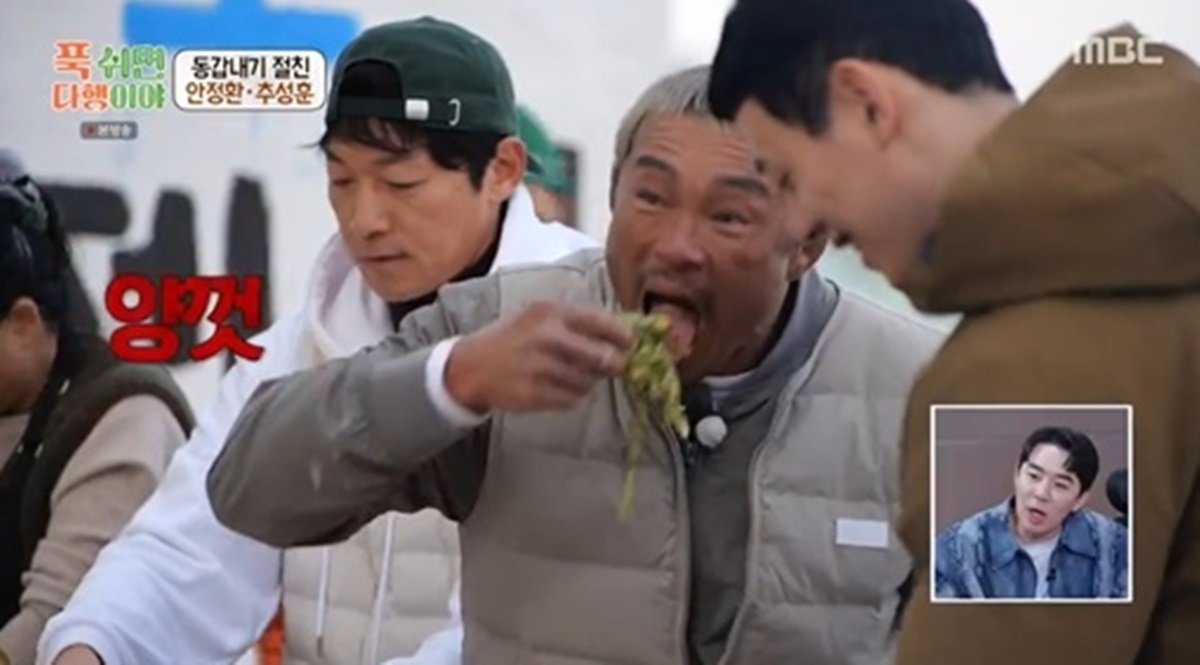 ‘푹쉬면다행이야’추성훈,아조씨매력(푹다행)(사진:MBC푹다행)추성훈이‘푹쉬면다행이야’에서‘아조씨’의매력을제대로터뜨렸다.3월17일방송된MBC예능프로그램‘푹쉬면다행이야’(이하‘푹다행’)40회에서는‘안CEO’안정환과그의동갑내기절친추성훈,그리고김남일,김동준,이관희의무인도레스토랑운영기가그려졌다.18일시청률조사회사닐슨코리아에따르면이날방송은5.3%(전국기준)의시청률을기록하며,전채널월요예능1위자리를지켰다.채널경쟁력과화제성을가늠하는핵심지표2049시청률역시1위를차지했다.이날안정환과추성훈은만나자마자티격태격하며절친케미를보여줬다.안정환이일을시키면추성훈은“너는뭐하게?”라고물었고,안정환은그런추성훈에게“누가보면네가CEO인줄알겠어”라며버럭했다.추성훈에게무인도레스토랑간판을맡긴안정환은걱정돼그가일하는현장을지켜봤다.추성훈은“자기것만신경쓰면되는데.엄청나를좋아하는가봐”라며안정환의관심을받아들였다안정환이선택한이날의섬은바로0.5성급무인도로,이곳을다시찾은이유는제철이고고급식재료인감성돔을잡기위해서였다.바다로나가는배위에서갑자기안정환의아들리환이와추성훈의딸사랑이의혼담이오고갔다.안정환은“사랑이는좋은데,리환이를추성훈에게줄수없다”며호통을쳤고,추성훈은내심서운해하다가김남일이“사랑이가아깝다”라는말에사르르풀렸다.이에안정환이“리환이가어때서”라며울컥하는모습이폭소를유발했다.감성돔어업은처음보는방식으로시청자들의눈길을끌었다.이는묵직한돌로바닷물표면을때려감성돔을유인하는방식이었다.이에‘때리기전문’인파이터추성훈이나섰다.남다른파괴력을보여주는추성훈의모습이모두의시선을강탈했다.이에눈을의심하게하는대물감성돔이연달아잡혔고,추성훈은감성돔과뽀뽀하라는안정환의말에질색하면서도수줍게입을맞춰웃음을자아냈다.감성돔만선이후배위에서는선장님이갓잡은생선을바로회로썰어주는‘배마카세’가열렸다.두툼한감성돔회를맛본안정환은“이건미슐랭받아야해”라며극찬했고,추성훈도“진짜맛있네”라며감탄했다.이어추성훈은모두의만류에도“나는괜찮아”라며회에과하게고추냉이를올리는남다른먹방을선보였다.결국시뻘게진얼굴로물을찾는추성훈을보며모두가유쾌한웃음을터뜨렸다.손님들의식재료로쓸감성돔세마리를들고섬으로돌아오자,급식대가이미영셰프가기다리고있었다.여기에더해머구리들이잡아온전복과소라,그리고해루질로획득한우럭조개등이이날의식재료로확보됐다.급식대가의첫번째음식은‘전복소라미나리전’이었다.그비주얼과고소한냄새는평소채소를잘먹지않는추성훈의식욕도자극했다.사자는절대풀을뜯지않는다는말과달리,그는맨손으로미나리전먹방을선보였다.다음요리는‘감성돔튀김’이었다.한마리씩손님들에게내놓느라일꾼들을위한여분이없었지만추성훈은포기하지않았다.마치승리를위해링위에오르듯비장한각오로손님들의테이블로간그는무릎까지꿇으며감성돔을얻어먹었다.눈물까지그렁그렁하며감성돔을먹는추성훈의처음보는모습이그맛을궁금하게했다.추성훈은먹는만큼일도열심히했다.급식대가바로옆에자리를잡고,명품팔찌를반짝이며수셰프로서의역할을톡톡히했다.마지막음식인‘우럭조개칼국수’를만들때는면반죽을직접밀고,잘라면을완성했다.급식대가는칼국수와함께먹을‘부추겉절이’도만들었다.손님들에게모든음식을내놓은뒤일꾼들도식사를즐겼다.이때추성훈은급식대가가선보이는채소의맛에푹빠져들어미나리에이어부추까지폭풍흡입해웃음을유발했다.한편방송말미공개된예고편에서는무인도‘환장의짝꿍’안정환과추성훈이의절직전까지갈등을겪는모습이그려져궁금증을자극했다.MBC‘푹쉬면다행이야’는매주월요일밤9시방송된다.박지혜기자[email protected]뉴스연예팀기사제보[email protected]©bnt뉴스.무단전재,재배포및AI데이터활용금지