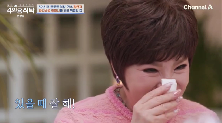 (엑스포츠뉴스이유림기자)김연자가파킨슨병진단을받은모친생각에눈물을흘렸다.17일방송된채널A‘절친토큐멘터리–4인용식탁’에서는가수김연자가후배홍지윤,김소연,황민호를초대해세대대통합을이뤘다.이날어린나이에데뷔한김연자는"우리엄마가나를따라다녔다.매니저는아니지만항상지방공연할때같이가서잤다"며자신의음악적재능은외갓집의DNA라고자랑했다.이어그는"가수된사람이나혼자지만다들보면노래를잘한다.아마엄마닮아서그런거같다"고예상했다.대화주제로어머니의이야기가계속이어지자김연자는"자꾸엄마얘기를안하려고하는데"라고울컥하며애써눈물을참았다.이에홍지윤은"엄마라는단어가어린친구도나이있는사람도(슬프다)"고공감했다.김연자는"우리엄마가지금많이아프시다"며참았던눈물을흘렸고,"그전에꿈이어머니가방배동산지50년이넘어서새집을지어서해드리고싶었다.그게올해드디어꿈을이루는데엄마가아프시다.새집을꼭보셔야되는데"라고바람을드러내안타까움을자아냈다.그는"어머니가운동도좋아하시고굉장히활발하신분이었다"며어느순간에파킨슨병을진단받았다고전했다.어머니의말이어눌해졌다고말하며"알고보니파킨슨병도두종류가있다.일반또는급성파킨슨병.우리엄마가급성이시다.매일달라지신다"며"꿈같고믿어지지않는다"고힘든심정을털어놓았다.그러면서김연자는세사람에게"있을때잘해"라고조언하며부모님의소중함을상기시켰다.사진=채널A방송화면이유림기자[email protected]©엑스포츠뉴스.무단전재및재배포금지.
