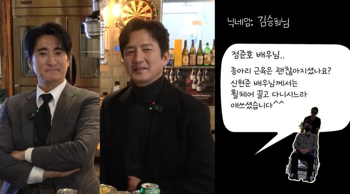 [서울=뉴시스]지난18일유튜브채널'신현준정준호'에는'형들의솔직한Q&A'라는제목의영상이올라왔다.(사진=유튜브채널'신현준정준호'캡처)[email protected]*재판매및DB금지[서울=뉴시스]전재경기자=배우정준호(56)가무릎부상후근황을공개했다.지난18일유튜브채널'신현준정준호'에는'형들의솔직한Q&A'라는제목의영상이올라왔다.영상에서신현준과정준호는구독자들의질문에답하는시간을가졌다.한구독자는"정준호배우님종아리근육은괜찮아지셨나요?신현준배우님께서는휠체어끌고다니시느라애쓰셨다"라고말했다.앞서정준호는대만여행중춤을추다가무릎부상을당해휠체어신세를졌다.동행했던신현준이정준호의곁을지켰다.이에대해정준호는"한달정도고생했고지금은아주건강하다"고답했다.신현준은"사실준호가운동을열심히해서종아리근육이좋다"고거들었다.정준호는자신의종아리를보여주며"내가종아리근육이두꺼워서스키니진못입는다"고자랑했다.한편정준호는아나운서출신방송인이하정(46)과2011년결혼해슬하에아들과딸을뒀다.[서울=뉴시스]정준호.(사진=유튜브채널'신현준정준호'캡처)[email protected]*재판매및DB금지☞공감언론뉴시스[email protected]©뉴시스.무단전재및재배포금지.