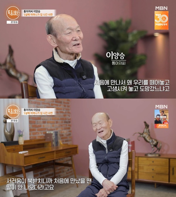 특종세상통아저씨이양승/사진=MBN[스포츠투데이서지현기자]'특종세상'통아저씨이양승씨가어머니에대한그리움을토로했다.13일밤방송된MBN'특종세상'에서는90년대추억의스타통아저씨이양승씨의근황이그려졌다.특종세상통아저씨이양승/사진=MBN이날이양승씨는예술단단원들과식사를하며"예전엔이렇게먹은적이없다.혼자커서생활하다보니까이런정을못느꼈다"며"새어머니가계셨다.성장하면서이런정을못느꼈다.친어머니가김천에사신다.거의100세다되셨을것"이라고말했다.이양승씨는모친에대해"두번만났다.나이가들다보니까또어머니생각이너무간절하다"며"한40년됐다.처음에만나서왜우리를떼어놓고고생시켜놓고도망갔냐고했다.그랬더니(어머니께서)하시는얘기가'네할아버지때문에갔다'고하더라.서러움이북받치니까처음에만났을땐말이안나오더라"고이야기했다.이와함께이양승씨는"저는어머니원망안한다.할아버지원망한다"고털어놨다.이양승씨의모친은시아버지의가정폭력으로가출해다른남자와재혼후새로운가정을차렸다.이어이양승씨와는40년만에재회했다고.그러나이양승씨는"자식들(이부동생)과함께사니까제가마음대로물어볼수도없었다"고말했다.마침내10년만에모친과재회한이양승씨는"엄마가해주는밥먹고싶습니다"라고그리움을토로했다.[스포츠투데이서지현기자[email protected]]Copyright©스포츠투데이.무단전재및재배포금지.