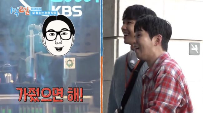 [OSEN=유수연기자]'1박2일'이동시간대경쟁프로'런닝맨'하하를찾아가눈길을끌었다.16일방송되는KBS2‘1박2일시즌4’에서는KBS방송국이곳저곳에서펼쳐지는여섯멤버의'KBS표류기'첫번째이야기가공개됐다.이날멤버들은지난주기상미션결과에따라사상처음으로오후1시16분에KBS에서오프닝을진행,여섯멤버는2인1조로KBS를탐방하며본격적인분량착즙미션에돌입했다.각자미션을끝낸후만난딘딘,김종민,유선호,이준은분량착즙겸라디오구경에나섰다.마침,당시진행중인라디오는KBS쿨FM'하하의슈퍼라디오'였던것.이에딘딘은"하하형출연안되잖아?"라며'1박2일'의동시간대방영프로'런닝맨'을견제했지만,김종민은"그냥하는거지뭐"라며막무가내로라디오구경에나섰다.이윽고'1박2일'멤버들을발견한하하는"잠깐만.'1박2일'이나.나런닝맨이다.뭐하는거냐?"라고당황했다.이를본딘딘은"하하형찍어라.방송내보내자"라고말하자,하하는"야딘딘아,꺼X"라고발끈해웃음을자아냈다./[email protected][사진]방송캡처Copyright©OSEN.무단전재및재배포금지.