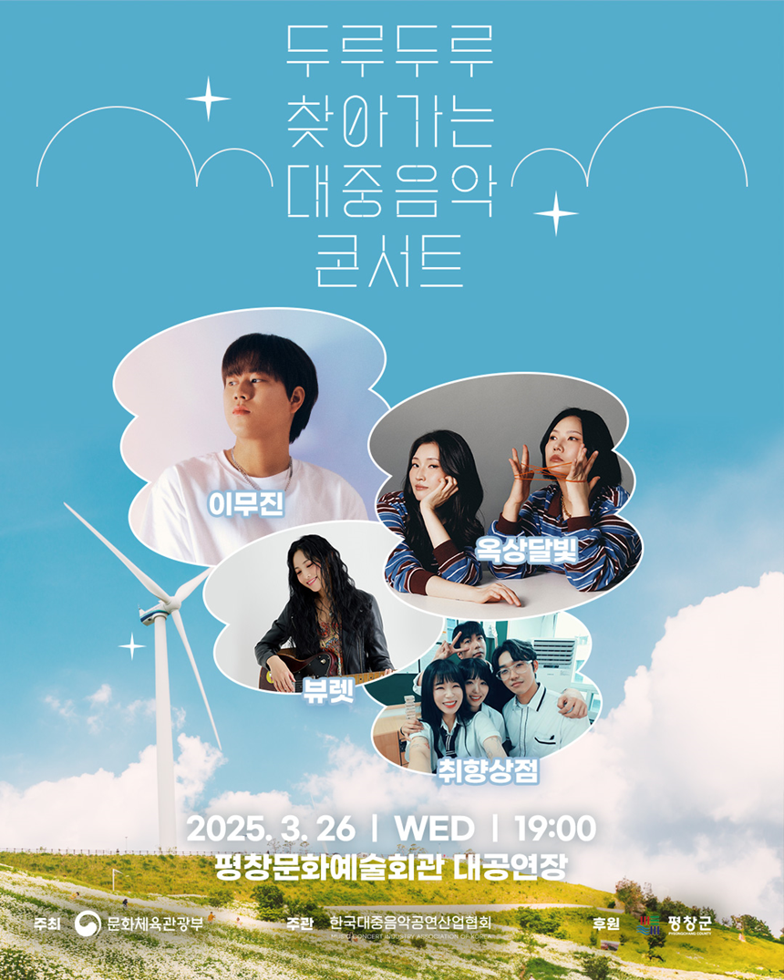 음공협제공사)한국대중음악공연산업협회(이하음공협)가주도하는‘두루두루찾아가는대중음악콘서트’가오는3월26일평창문화예술회관대공연장에서열린다.‘평창,만끽해봄!’을부제로개최되는이번공연은역대급무대와환상의출연진으로명품무대가기대된다.이날공연에는무궁무진싱어송라이터‘이무진’,환상의하모니‘옥상달빛’,‘美친보컬혼성밴드!‘뷰렛’,감성충만보이스‘취향상점’이출연평창군민을위한특별한무대를선사할예정이다.‘두루두루찾아가는대중음악콘서트’는전국의문화소외지역을직접찾아가다양한장소,다양한장르의컨텐츠의문화향유기회를제공하는프로그램으로오는4월말까지13회의무료공연을진행할예정이다.음공협관계자는“이번평창공연은,지역에서는자주볼수없는색다른콘셉트로,평창군민모두만끽할수있는특별한시간이될것”이라며“이어각지역별문화소외,인구감소,세대소통등의이슈를해소하기위해지역과상생하는밑거름역할로서최선을다할것”이라말했다.한편한국대중음악공연산업협회는콘서트,페스티벌,월드투어,내한공연등다양한대중음악공연을주최∙주관하고있는총43개사의협회원사로구성되어있으며,대중음악공연산업의미래와종사자의권리를위해협력하는사단법인단체이다.안병길기자[email protected]©스포츠경향.무단전재및재배포금지.